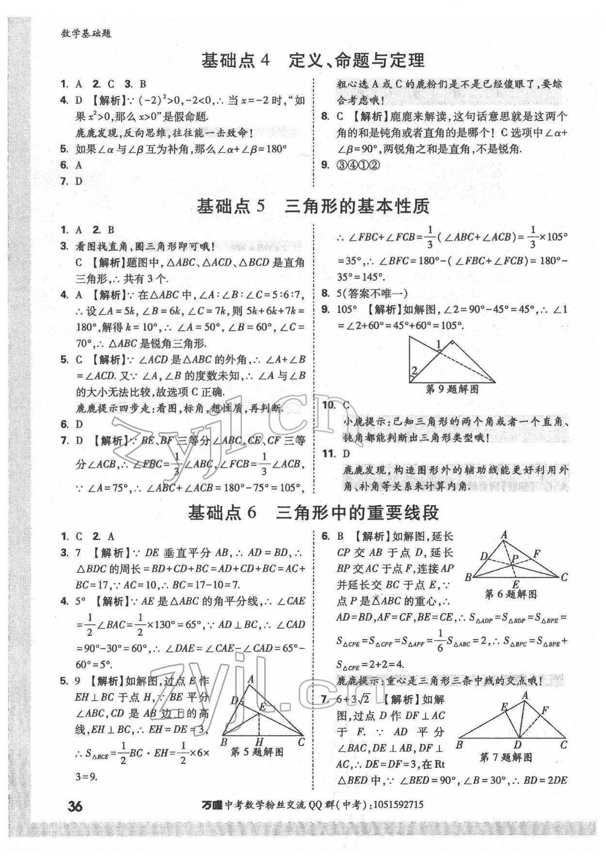 注:目前有些书本章节名称可能整理的还不是很完善,但都是按照顺序排列的,请同学们按照顺序仔细查找。练习册 2022年万唯中考数学基础题 答案主要是用来给同学们做完题方便对答案用的,请勿直接抄袭。