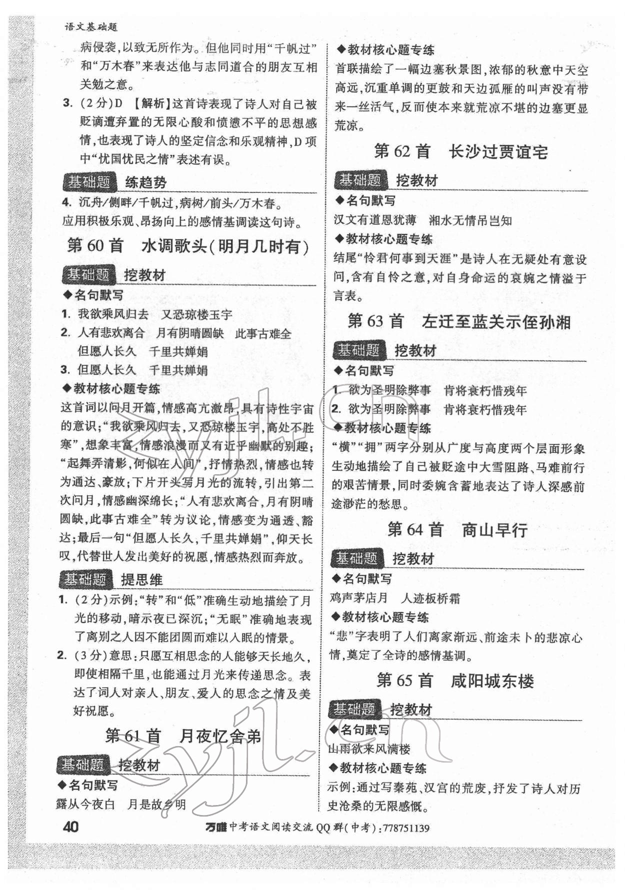 注:目前有些书本章节名称可能整理的还不是很完善,但都是按照顺序排列的,请同学们按照顺序仔细查找。练习册 2022年万唯中考语文基础题 答案主要是用来给同学们做完题方便对答案用的,请勿直接抄袭。