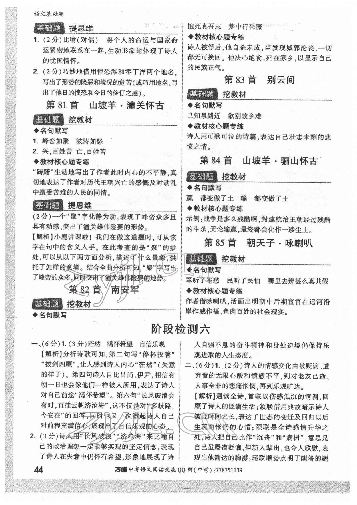 注:目前有些书本章节名称可能整理的还不是很完善,但都是按照顺序排列的,请同学们按照顺序仔细查找。练习册 2022年万唯中考语文基础题 答案主要是用来给同学们做完题方便对答案用的,请勿直接抄袭。