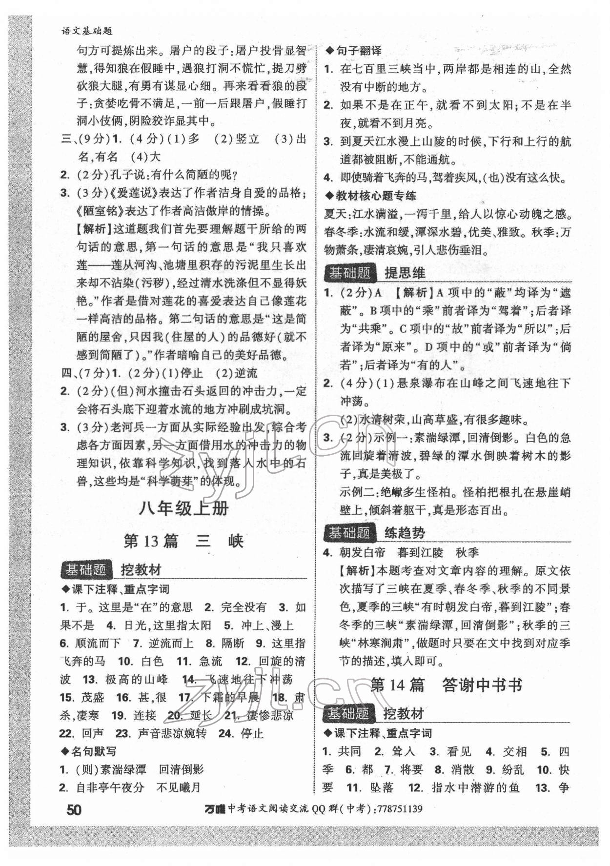 注:目前有些书本章节名称可能整理的还不是很完善,但都是按照顺序排列的,请同学们按照顺序仔细查找。练习册 2022年万唯中考语文基础题 答案主要是用来给同学们做完题方便对答案用的,请勿直接抄袭。