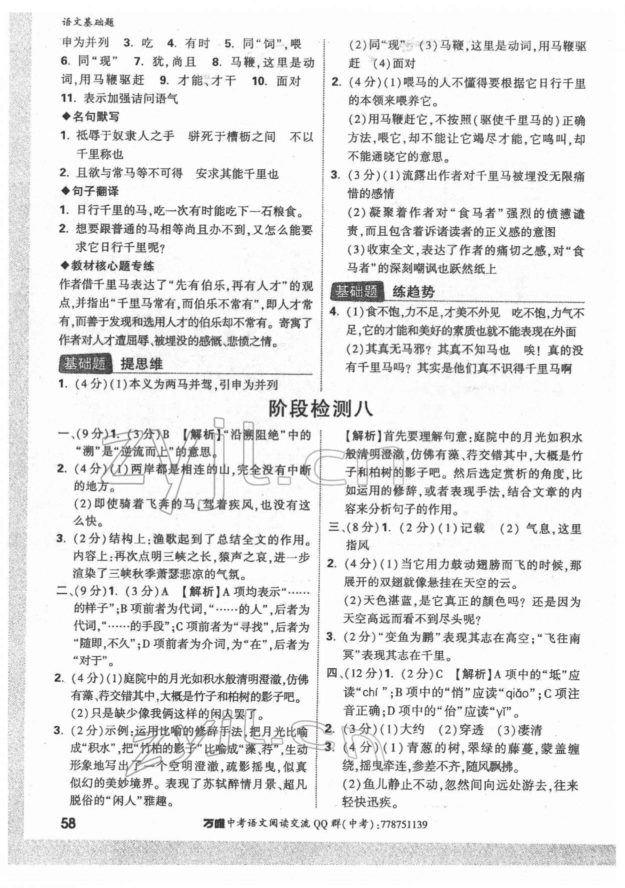 注:目前有些书本章节名称可能整理的还不是很完善,但都是按照顺序排列的,请同学们按照顺序仔细查找。练习册 2022年万唯中考语文基础题 答案主要是用来给同学们做完题方便对答案用的,请勿直接抄袭。