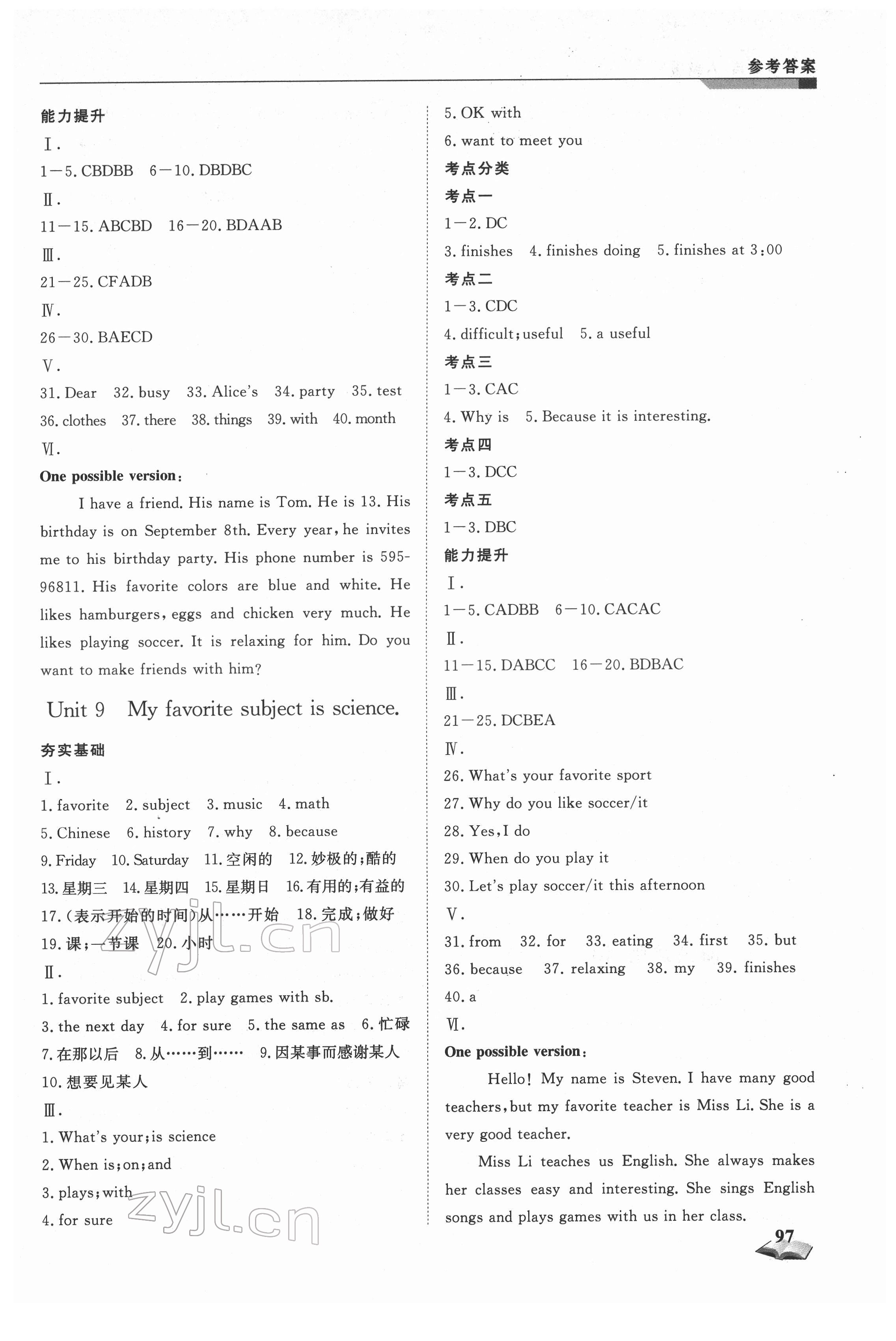 注:目前有些书本章节名称可能整理的还不是很完善,但都是按照顺序排列的,请同学们按照顺序仔细查找。练习册 2022年寒假衔接超车道七年级英语人教版 答案主要是用来给同学们做完题方便对答案用的,请勿直接抄袭。