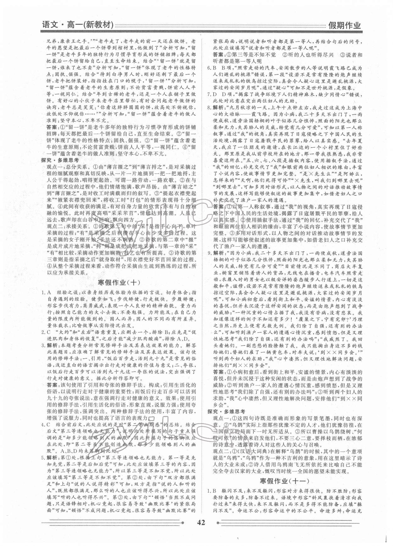 注:目前有些书本章节名称可能整理的还不是很完善,但都是按照顺序排列的,请同学们按照顺序仔细查找。练习册 2022年衡水名师新作假期作业高一语文 答案主要是用来给同学们做完题方便对答案用的,请勿直接抄袭。