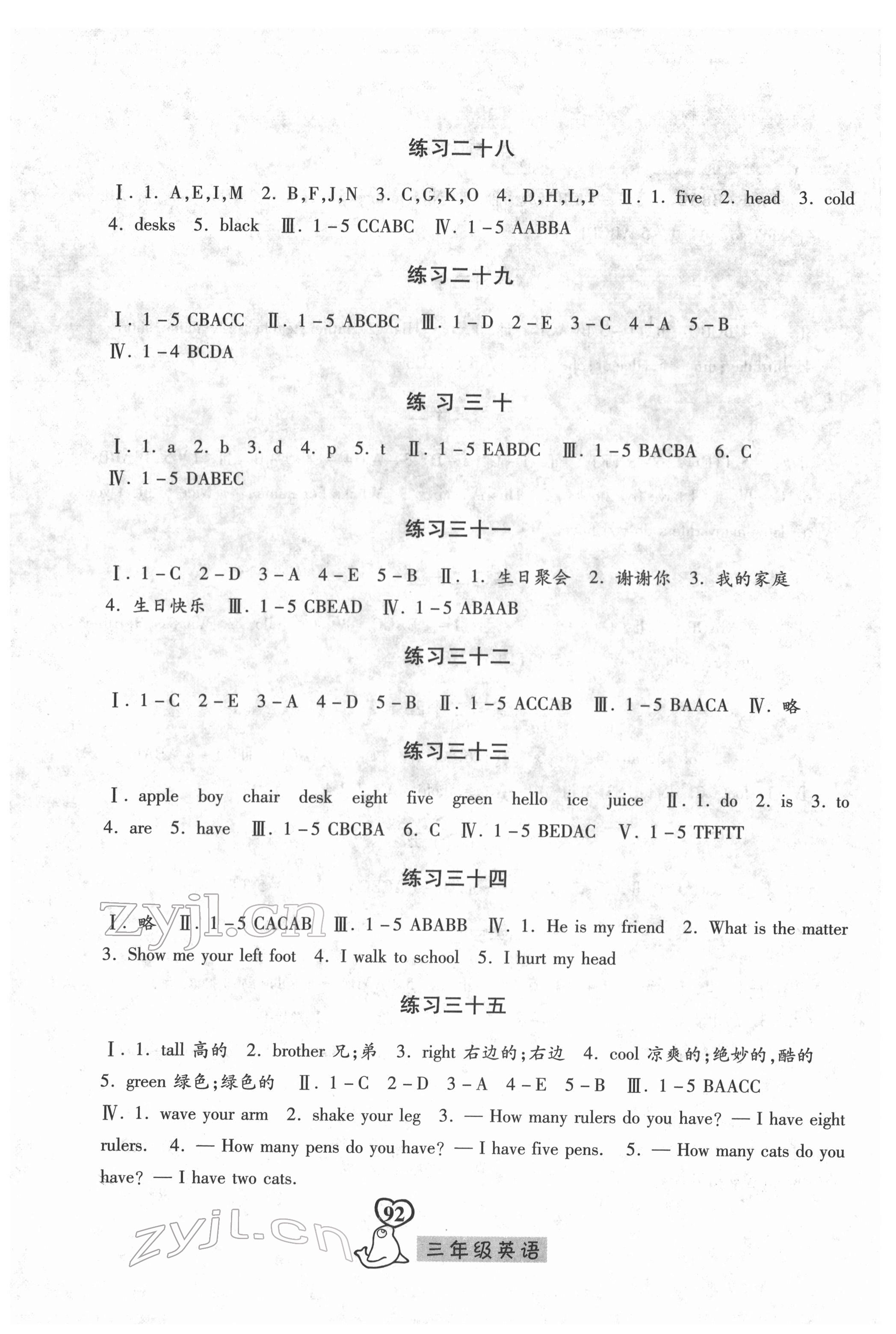 2022年一路领先寒假作业河北美术出版社三年级英语国标版