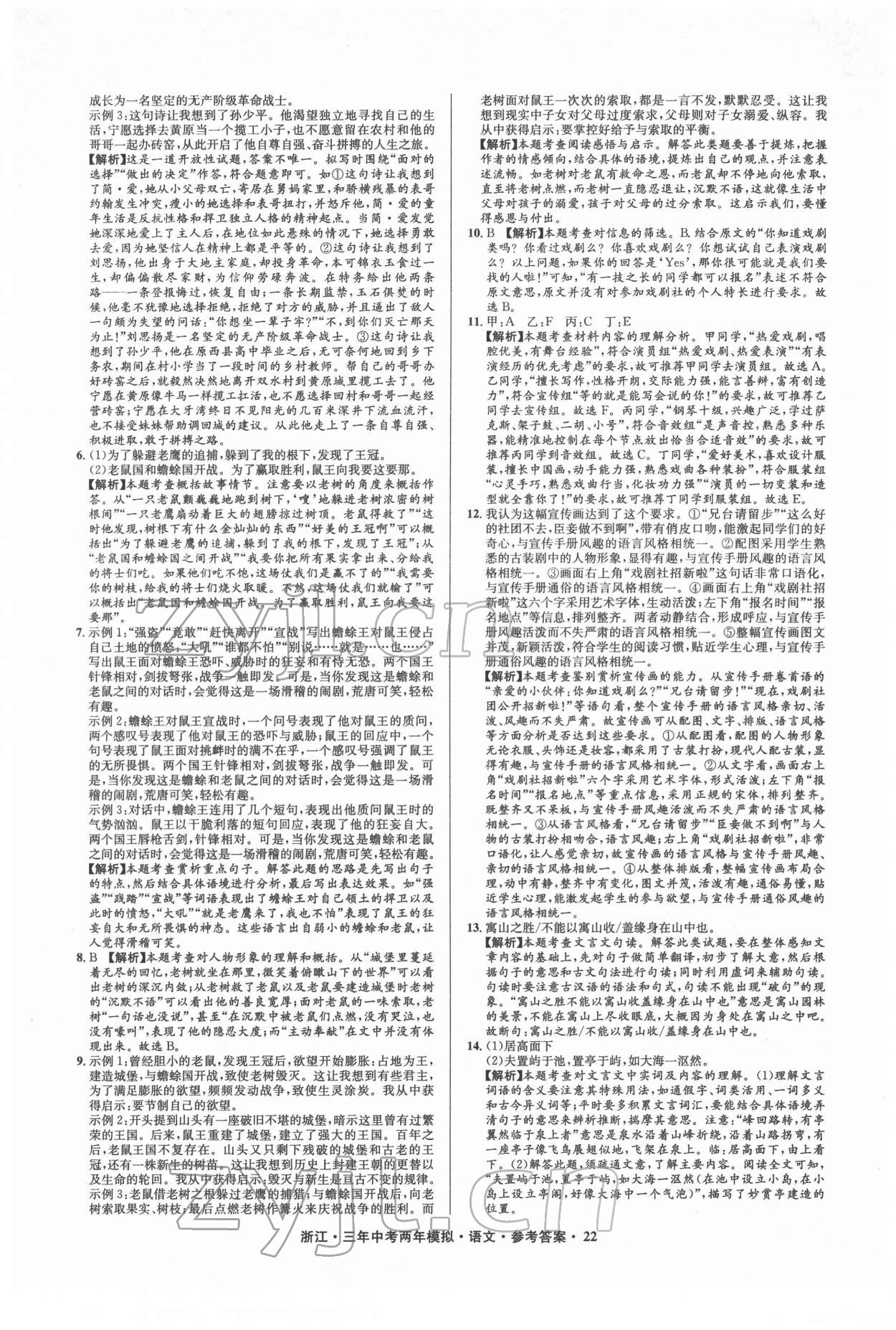 2022年3年中考2年模拟语文浙江专版