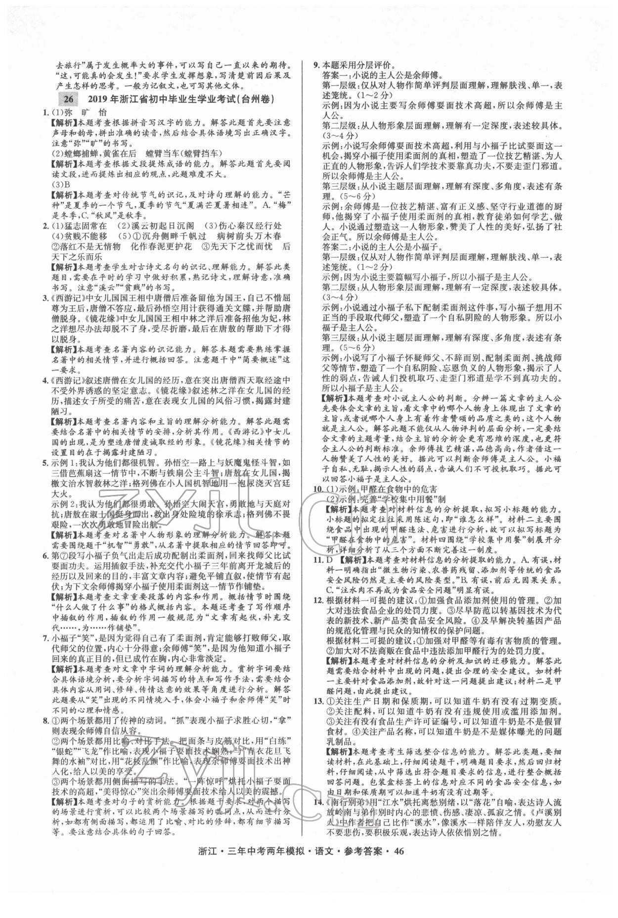 2022年3年中考2年模拟语文浙江专版