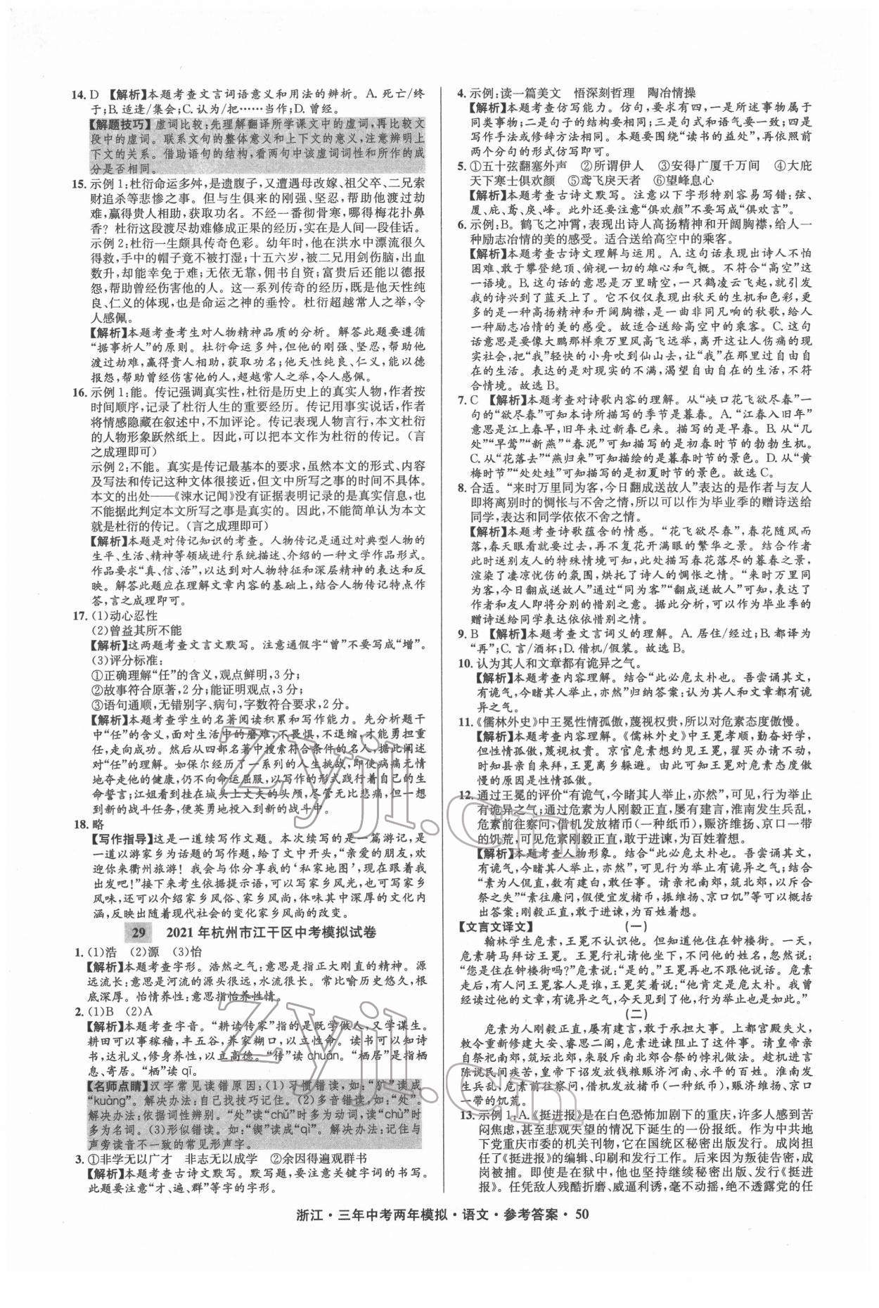 2022年3年中考2年模拟语文浙江专版