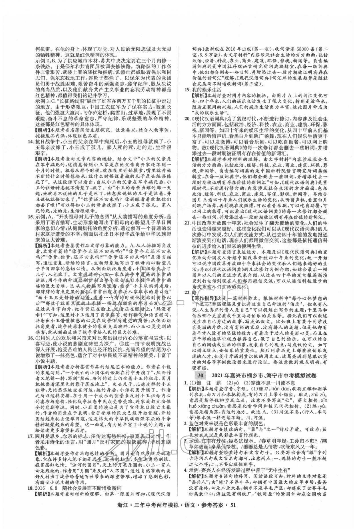2022年3年中考2年模拟语文浙江专版