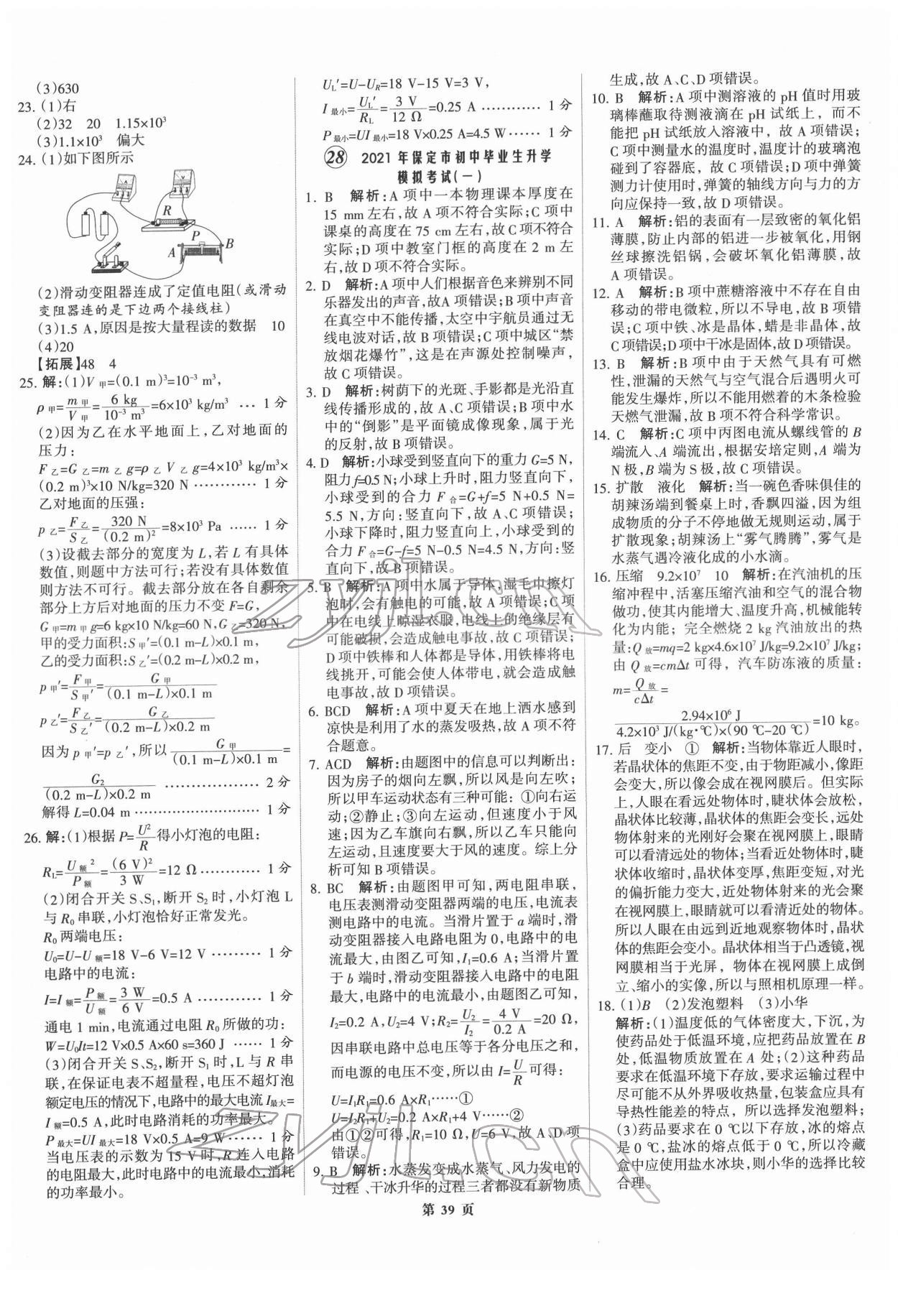 2022年全优中考全国中考试题精选精析物理河北专版