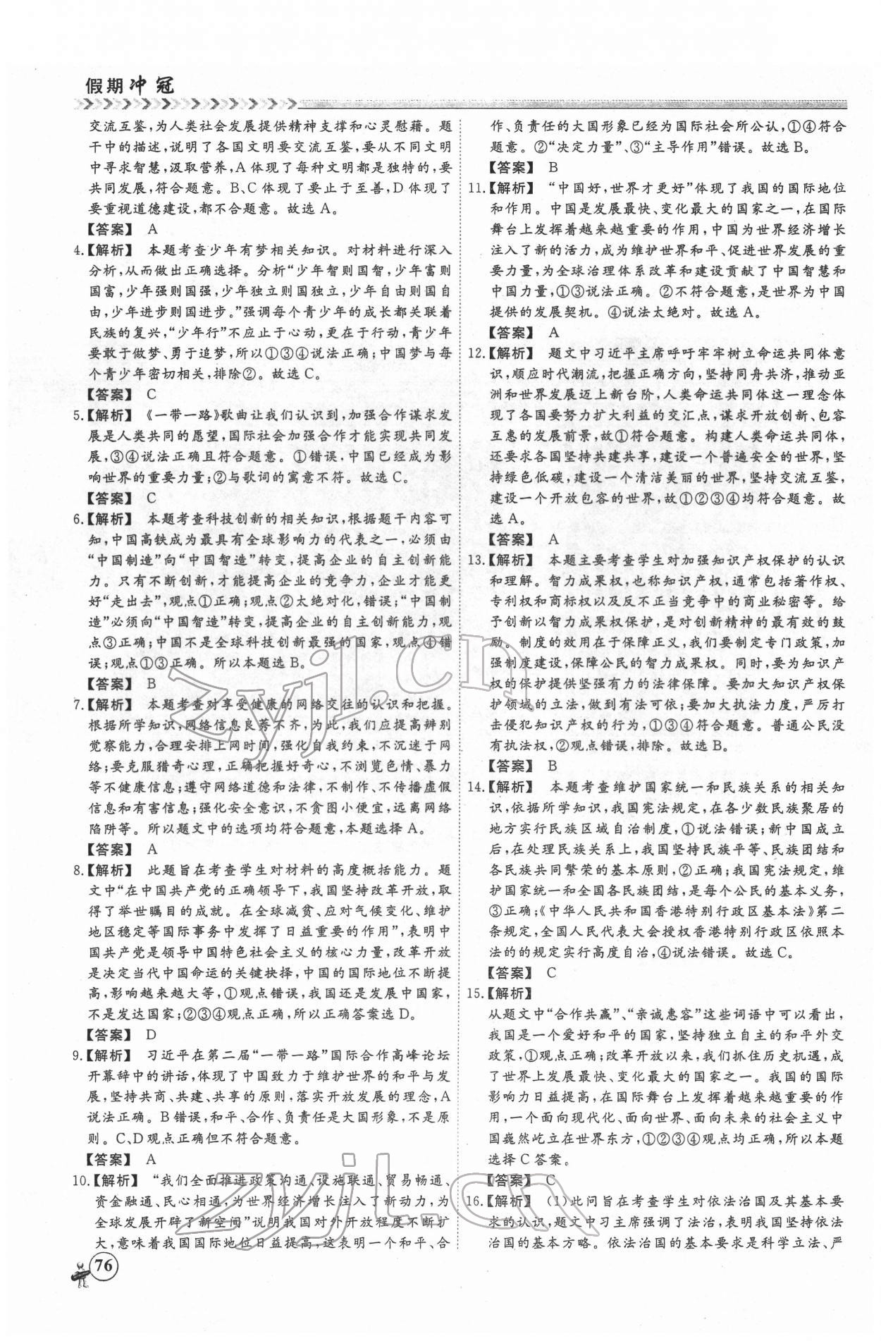 注:目前有些书本章节名称可能整理的还不是很完善,但都是按照顺序排列的,请同学们按照顺序仔细查找。练习册 2022年假期冲冠云南大学出版社九年级道德与法治 答案主要是用来给同学们做完题方便对答案用的,请勿直接抄袭。