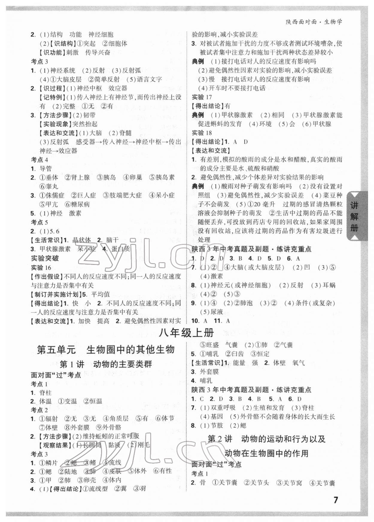 注:目前有些书本章节名称可能整理的还不是很完善,但都是按照顺序排列的,请同学们按照顺序仔细查找。练习册 2022年陕西中考面对面生物 答案主要是用来给同学们做完题方便对答案用的,请勿直接抄袭。