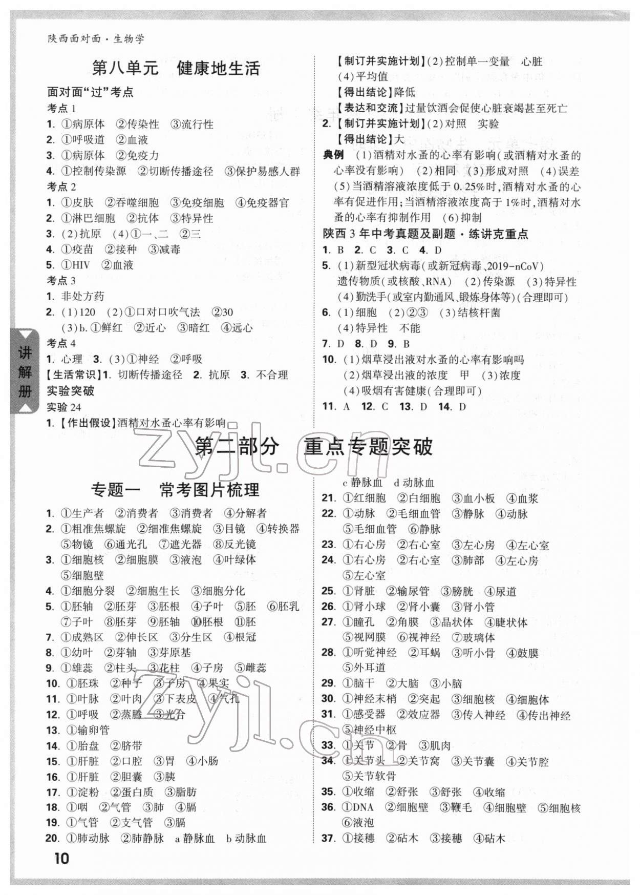 注:目前有些书本章节名称可能整理的还不是很完善,但都是按照顺序排列的,请同学们按照顺序仔细查找。练习册 2022年陕西中考面对面生物 答案主要是用来给同学们做完题方便对答案用的,请勿直接抄袭。