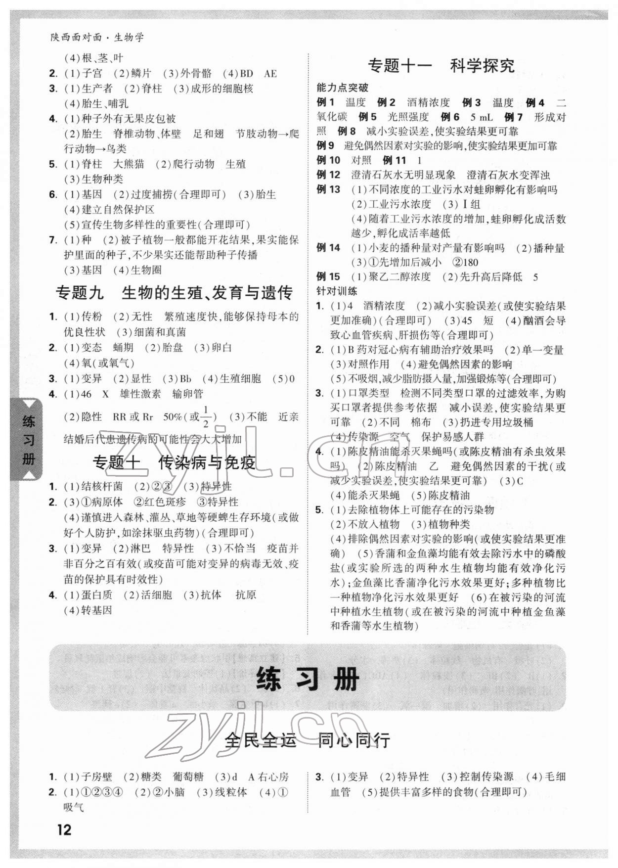 2022年陕西中考面对面生物