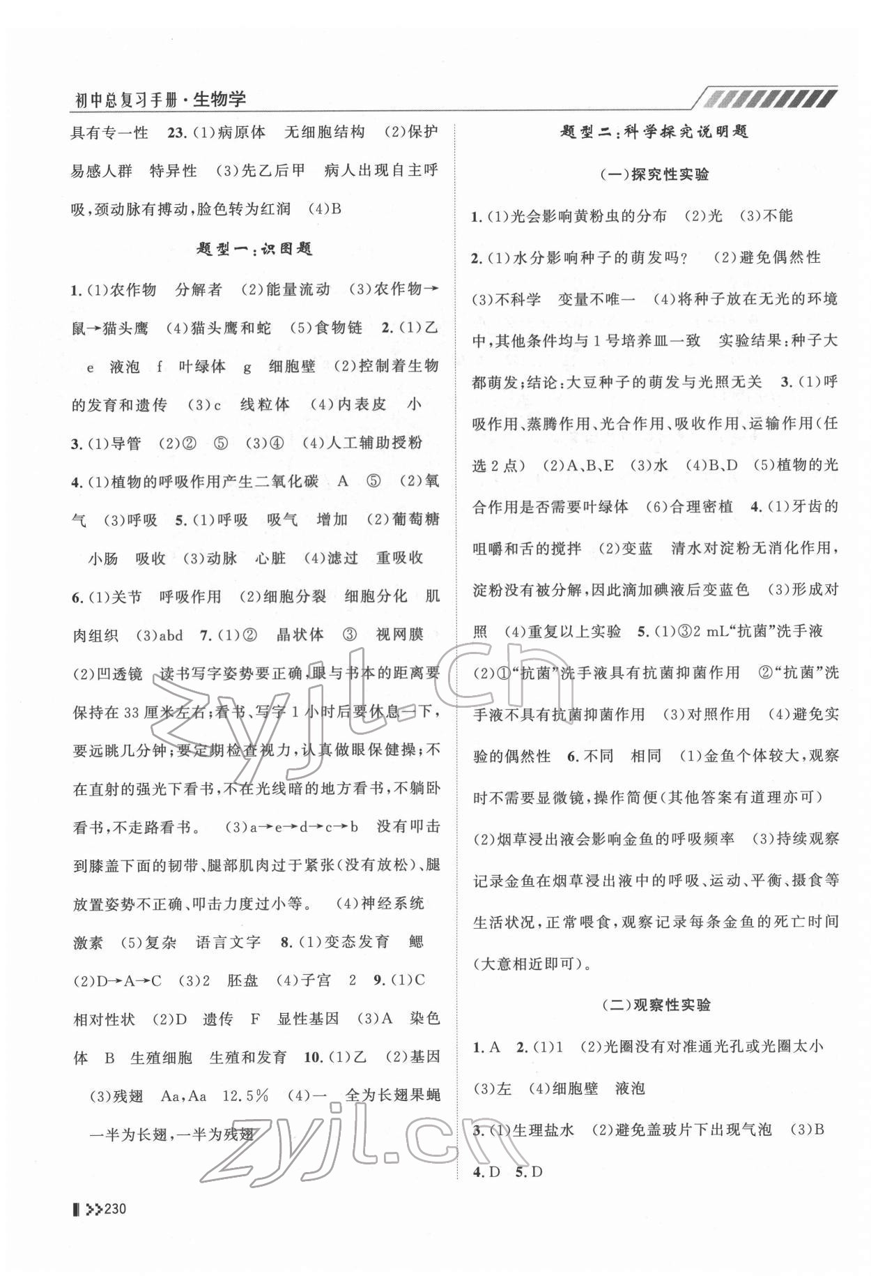 注:目前有些书本章节名称可能整理的还不是很完善,但都是按照顺序排列的,请同学们按照顺序仔细查找。练习册 2022年初中总复习手册山东人民出版社生物 答案主要是用来给同学们做完题方便对答案用的,请勿直接抄袭。