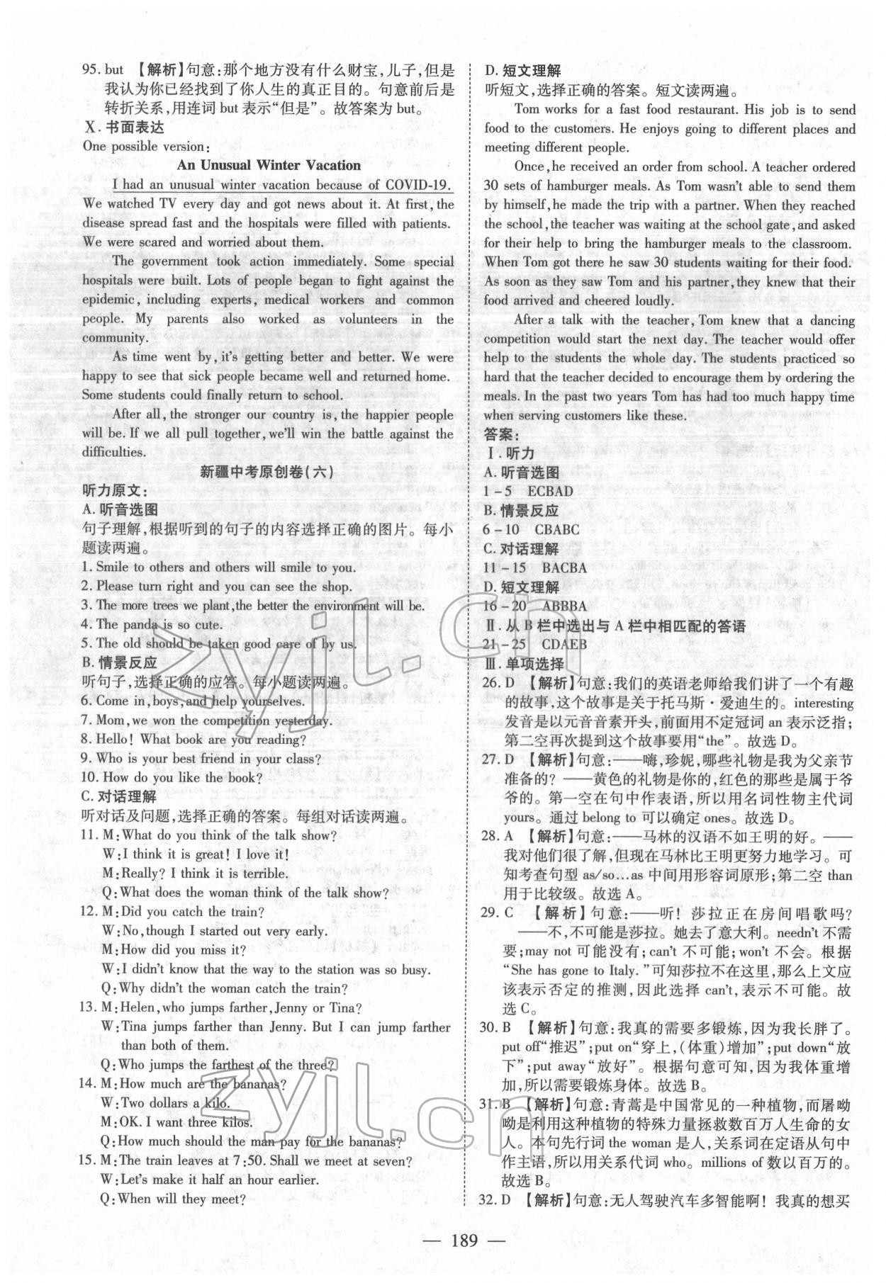 注:目前有些书本章节名称可能整理的还不是很完善,但都是按照顺序排列的,请同学们按照顺序仔细查找。练习册 2022年中考试题荟萃及详解英语新疆专版 答案主要是用来给同学们做完题方便对答案用的,请勿直接抄袭。