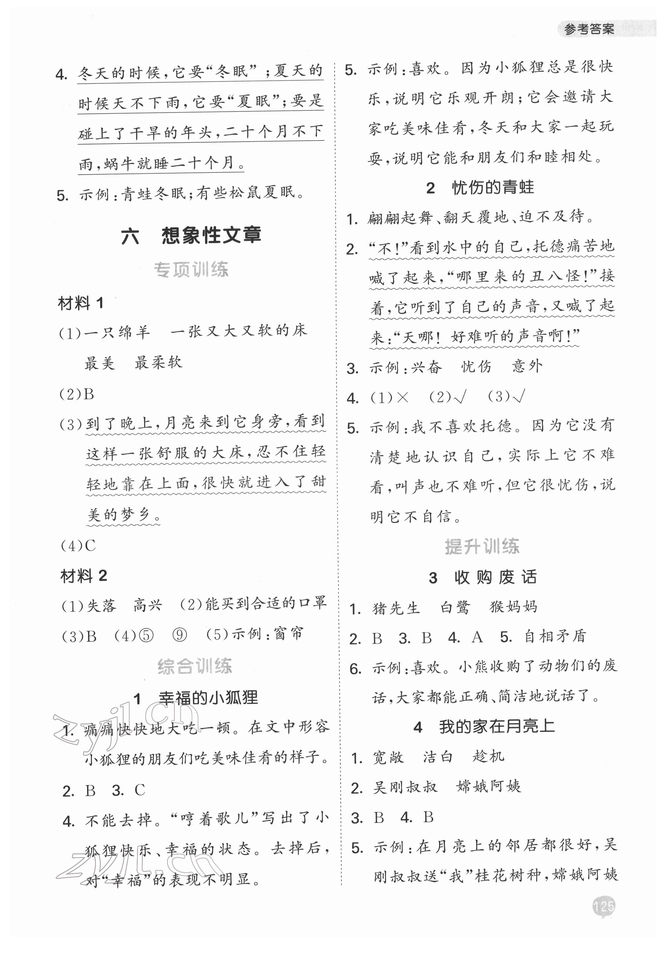 注:目前有些书本章节名称可能整理的还不是很完善,但都是按照顺序排列的,请同学们按照顺序仔细查找。练习册 2022年53天天练三年级语文下册人教版小学课外阅读 答案主要是用来给同学们做完题方便对答案用的,请勿直接抄袭。