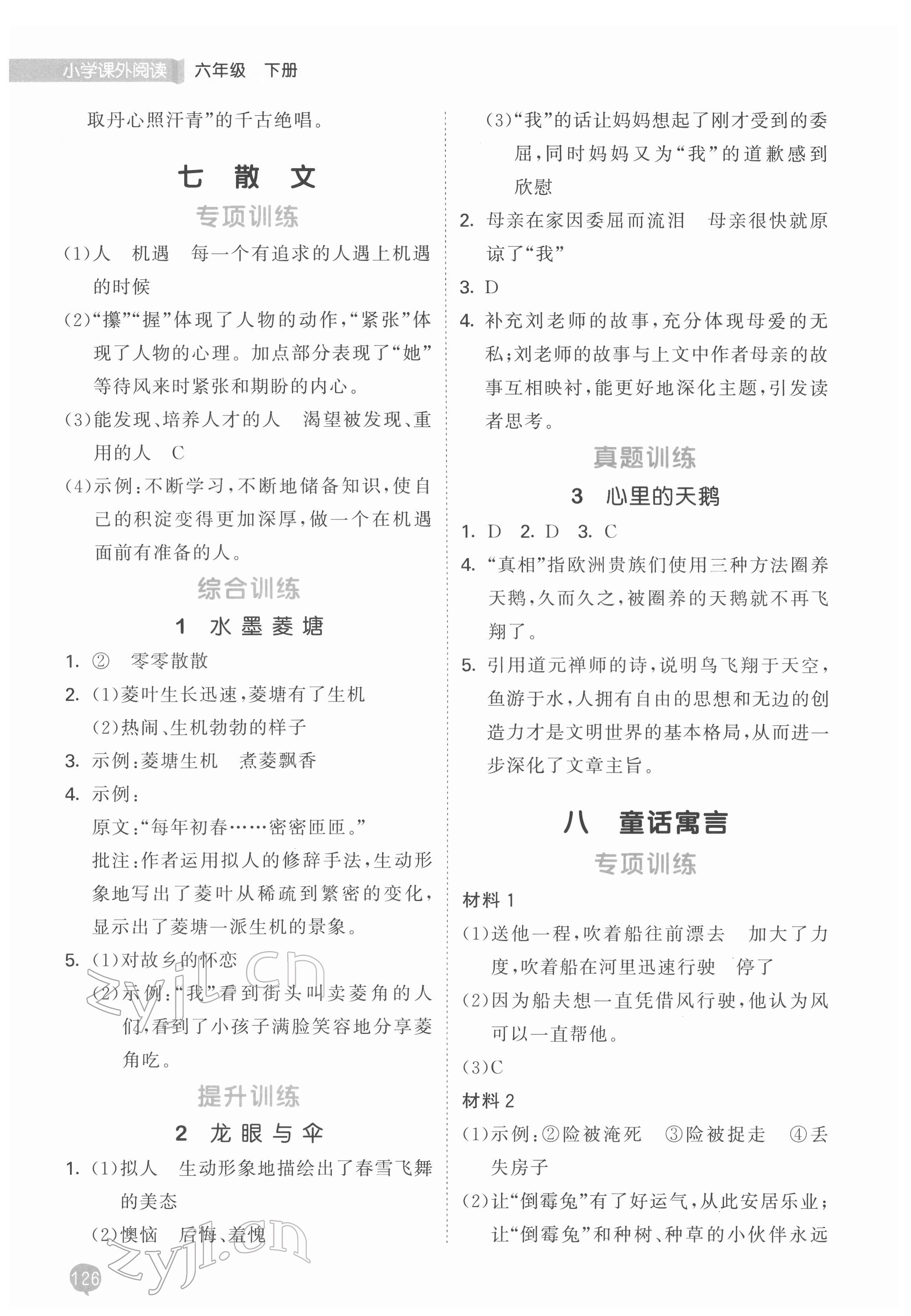 注:目前有些书本章节名称可能整理的还不是很完善,但都是按照顺序排列的,请同学们按照顺序仔细查找。练习册 2022年53天天练六年级语文下册人教版小学课外阅读 答案主要是用来给同学们做完题方便对答案用的,请勿直接抄袭。