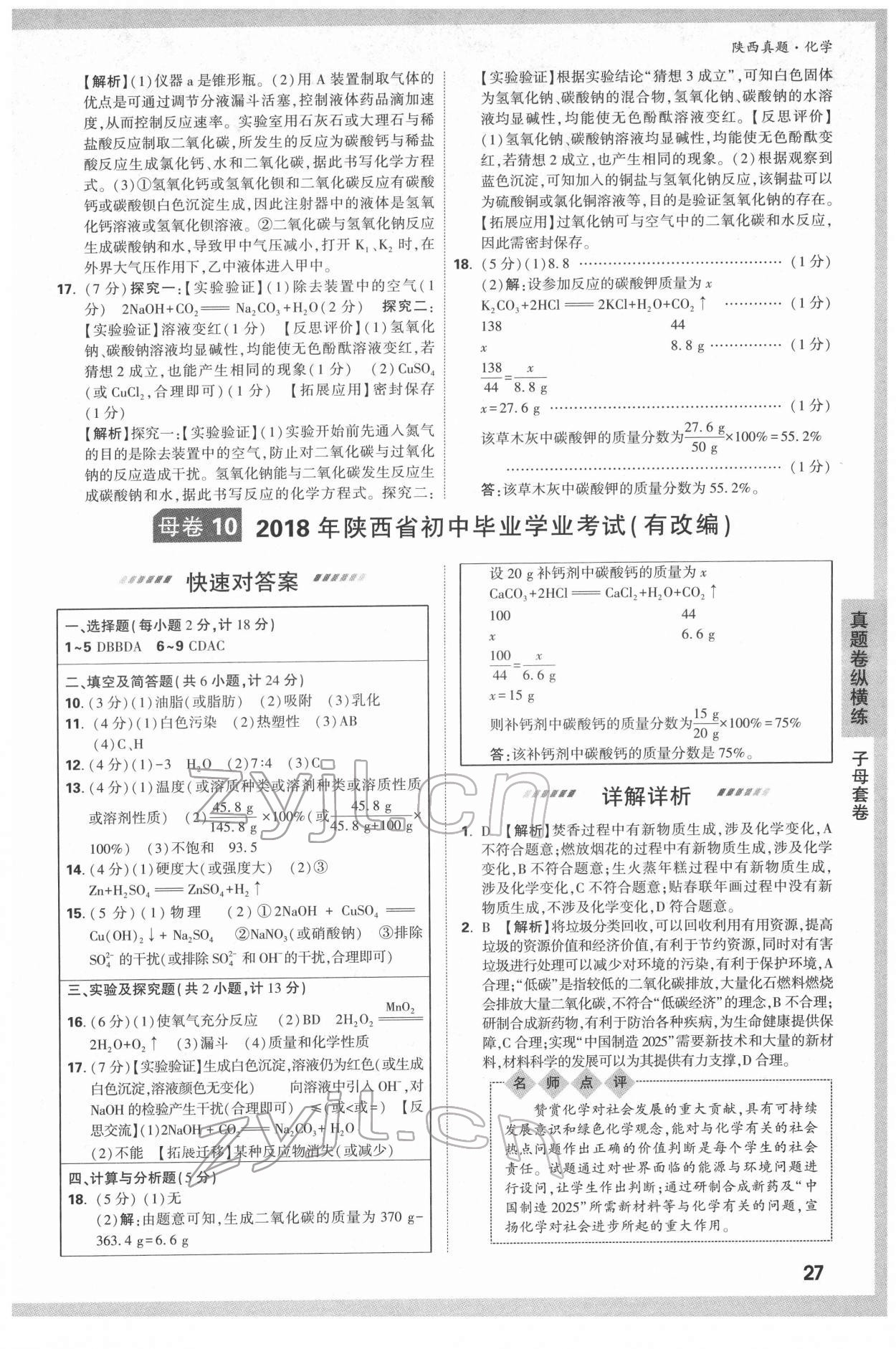 注:目前有些书本章节名称可能整理的还不是很完善,但都是按照顺序排列的,请同学们按照顺序仔细查找。练习册 2022年万唯中考真题化学人教版陕西专版 答案主要是用来给同学们做完题方便对答案用的,请勿直接抄袭。
