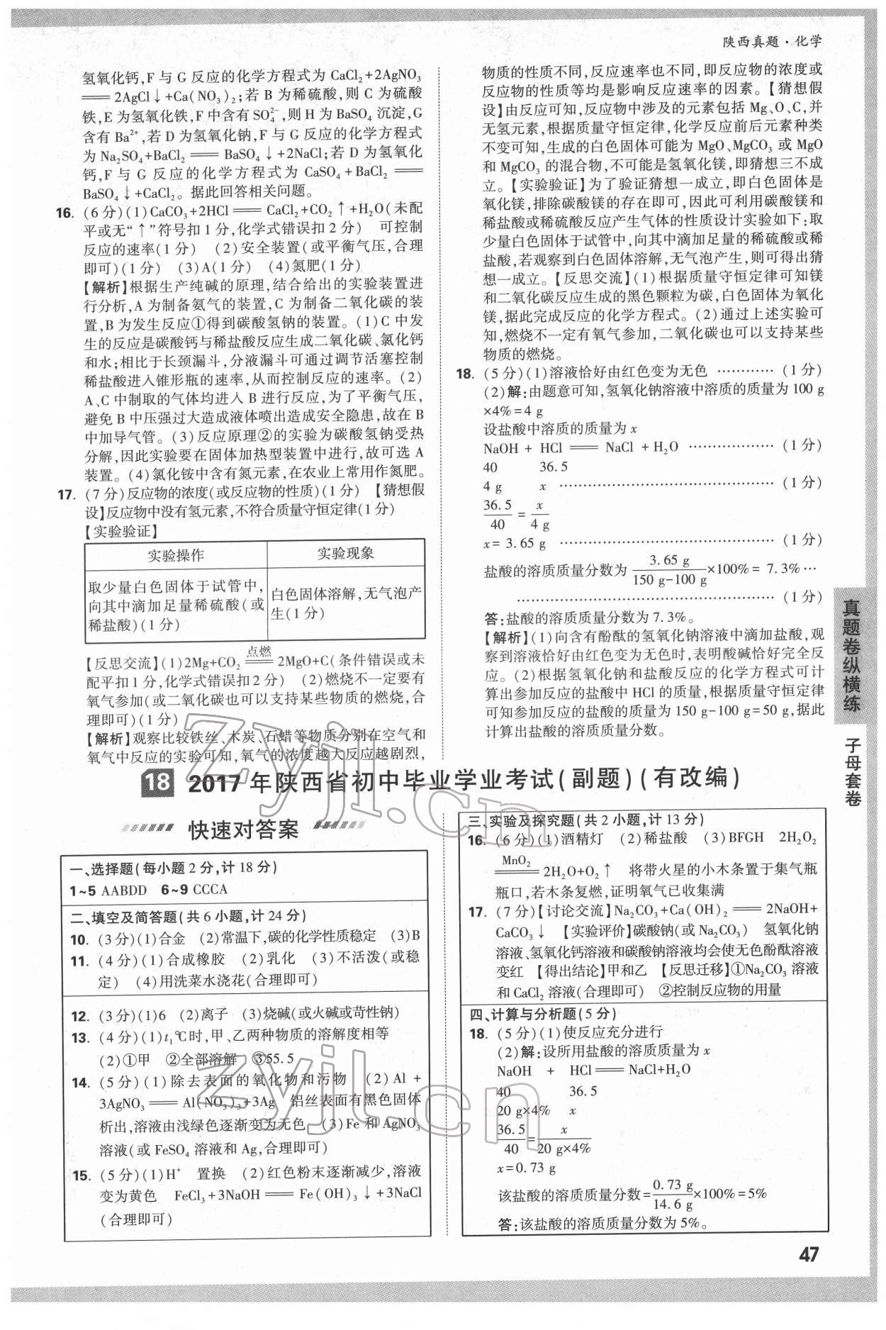 注:目前有些书本章节名称可能整理的还不是很完善,但都是按照顺序排列的,请同学们按照顺序仔细查找。练习册 2022年万唯中考真题化学人教版陕西专版 答案主要是用来给同学们做完题方便对答案用的,请勿直接抄袭。