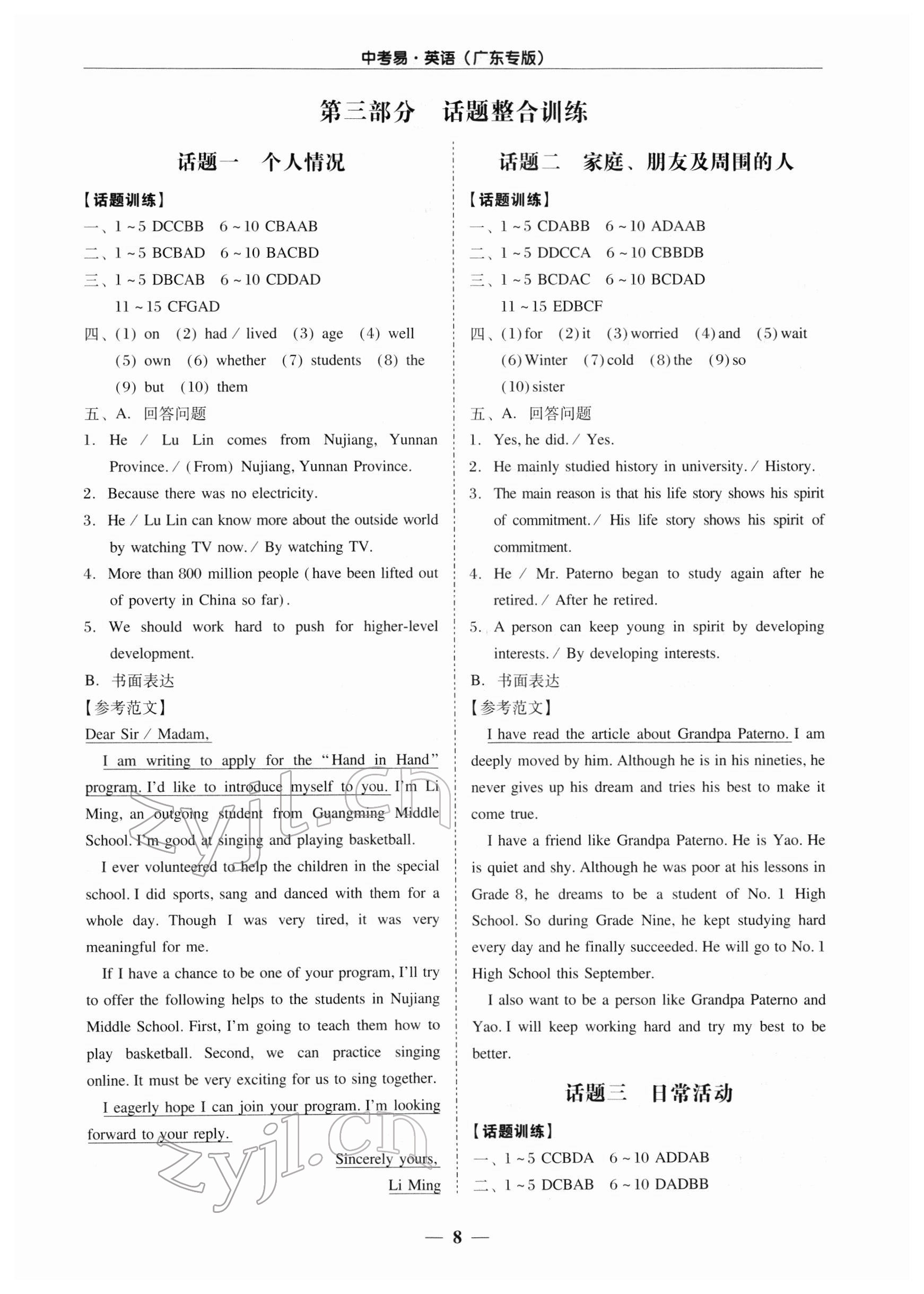 注:目前有些书本章节名称可能整理的还不是很完善,但都是按照顺序排列的,请同学们按照顺序仔细查找。练习册 2022年中考易英语广东专版 答案主要是用来给同学们做完题方便对答案用的,请勿直接抄袭。