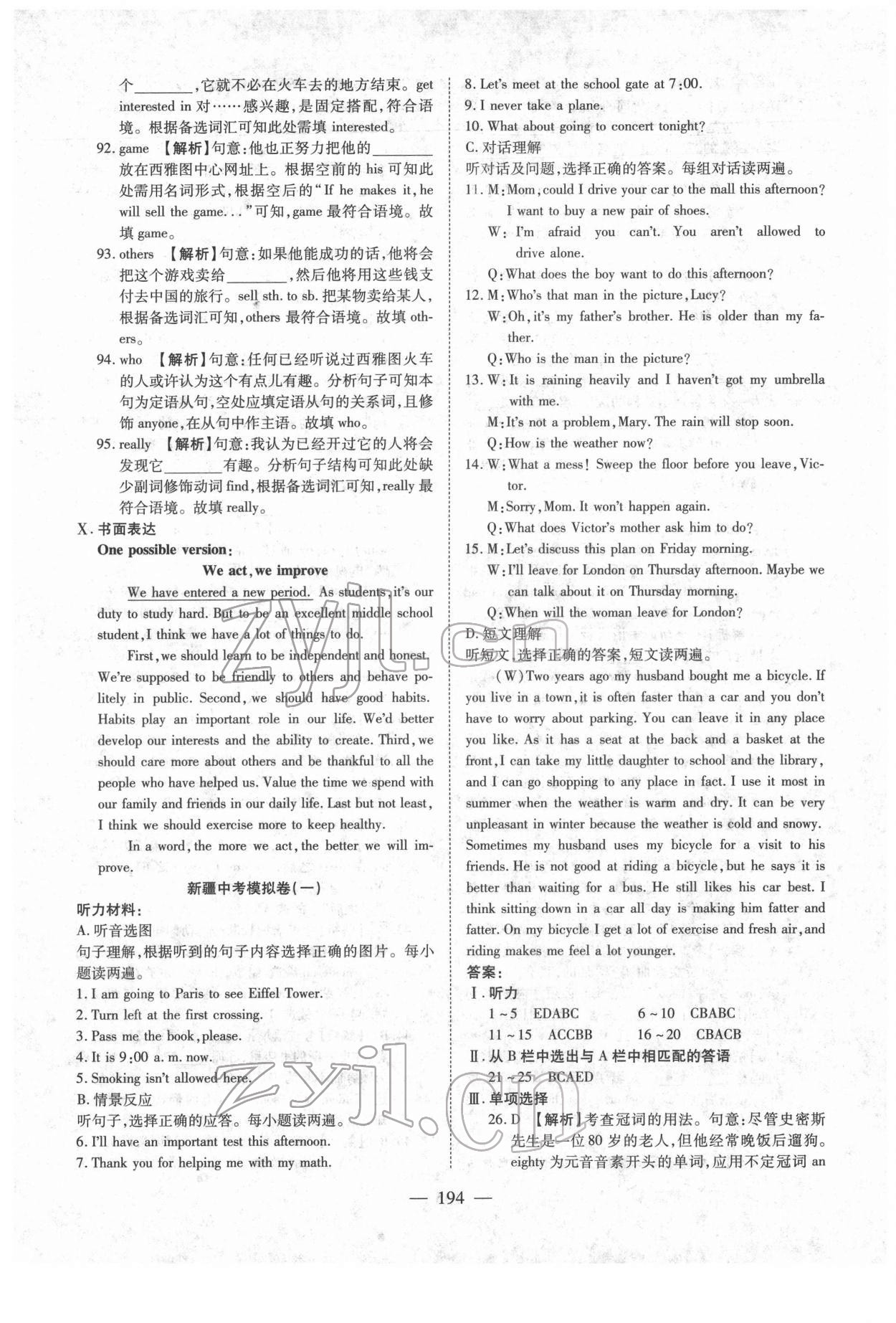 注:目前有些书本章节名称可能整理的还不是很完善,但都是按照顺序排列的,请同学们按照顺序仔细查找。练习册 2022年中考押题模拟试卷面对面新突破英语 答案主要是用来给同学们做完题方便对答案用的,请勿直接抄袭。