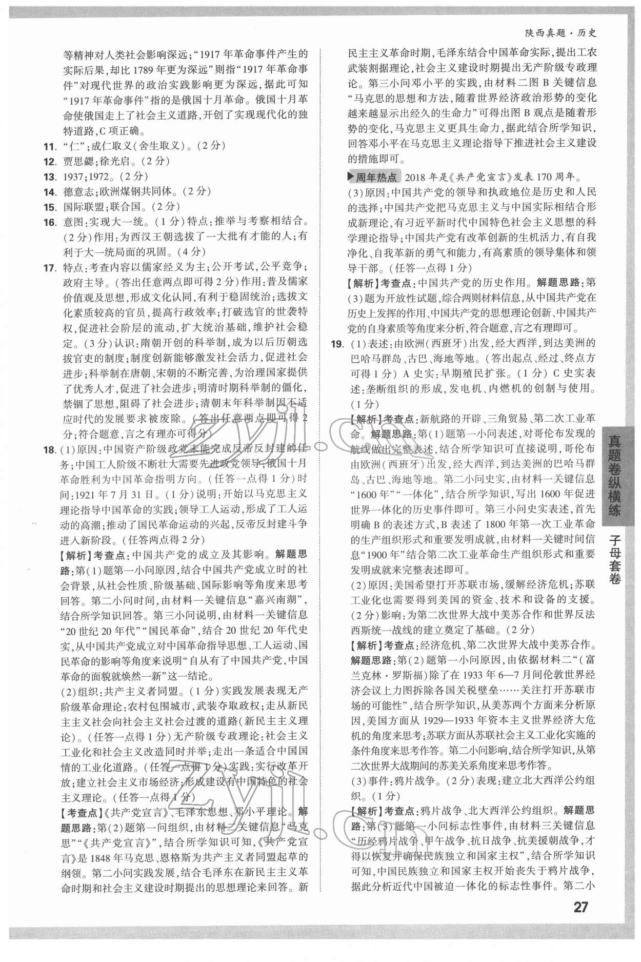 2022年万唯中考真题历史人教版陕西专版