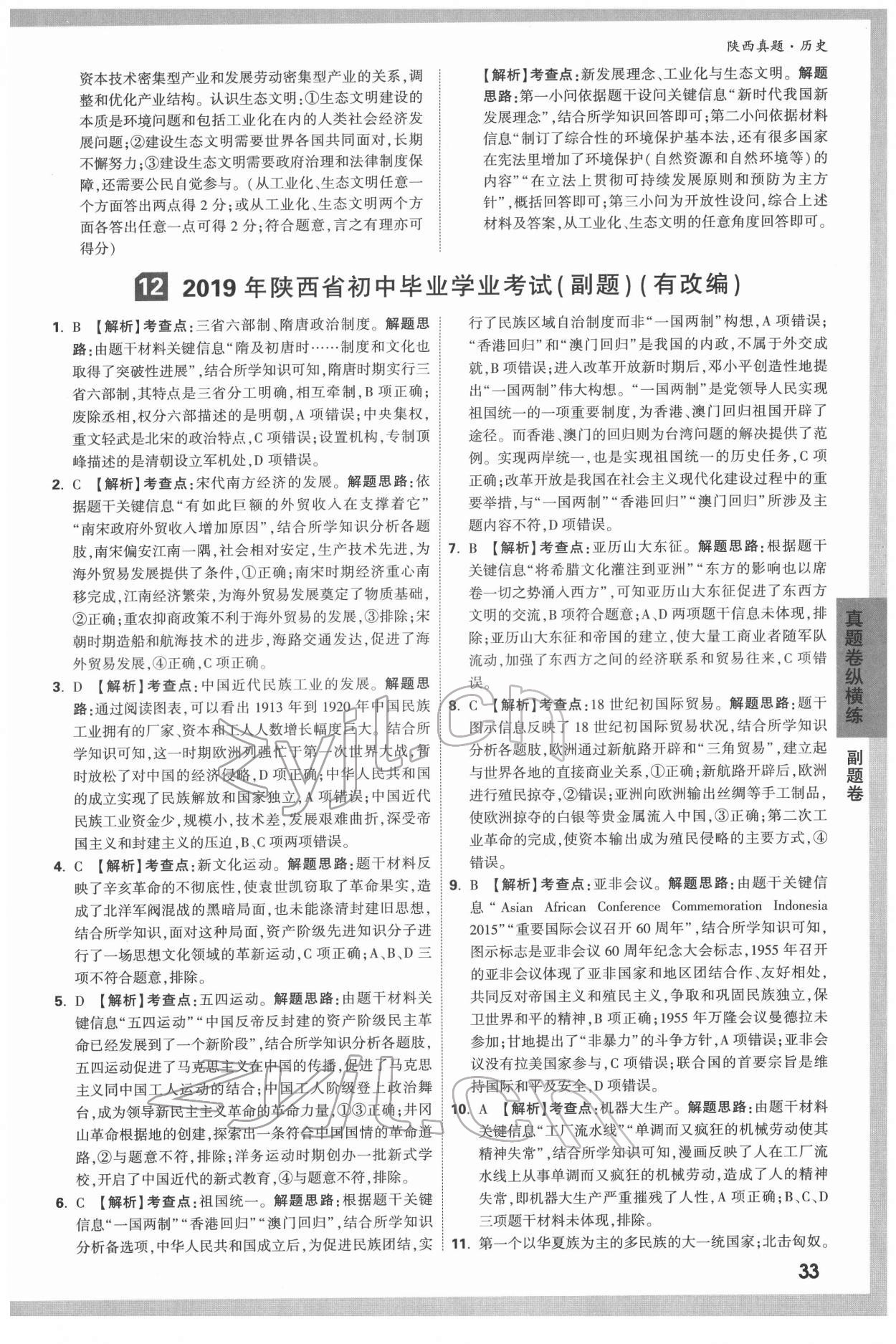 2022年万唯中考真题历史人教版陕西专版