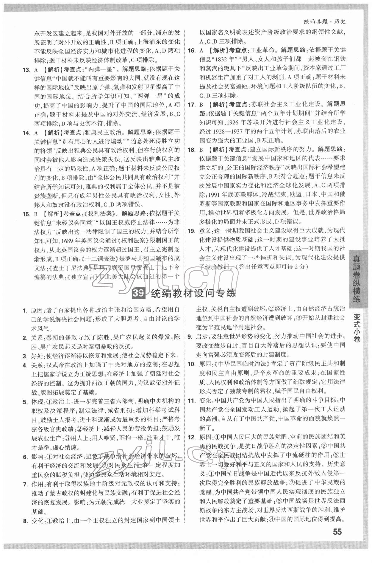 注:目前有些书本章节名称可能整理的还不是很完善,但都是按照顺序排列的,请同学们按照顺序仔细查找。练习册 2022年万唯中考真题历史人教版陕西专版 答案主要是用来给同学们做完题方便对答案用的,请勿直接抄袭。