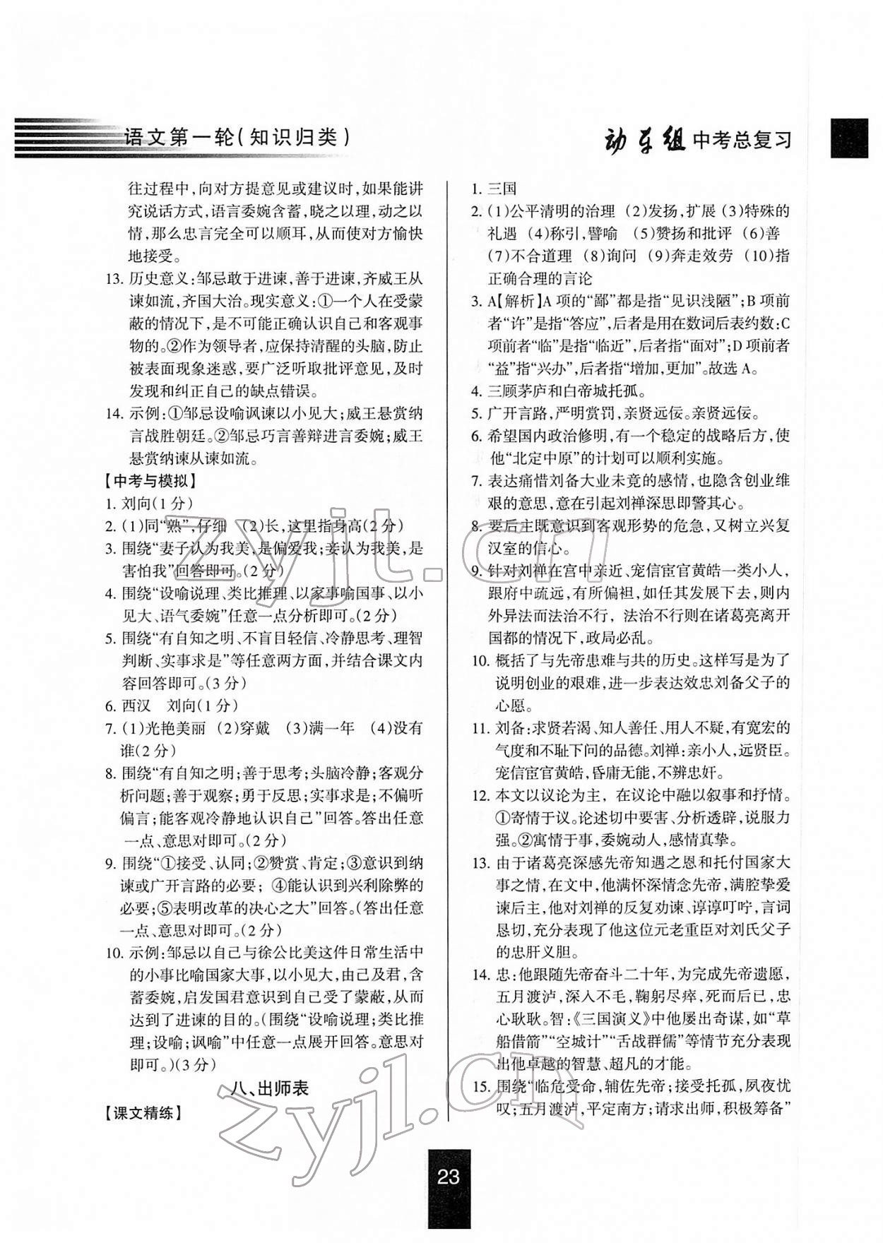 注:目前有些书本章节名称可能整理的还不是很完善,但都是按照顺序排列的,请同学们按照顺序仔细查找。练习册 2022年动车组中考总复习语文第一轮知识归类人教版 答案主要是用来给同学们做完题方便对答案用的,请勿直接抄袭。