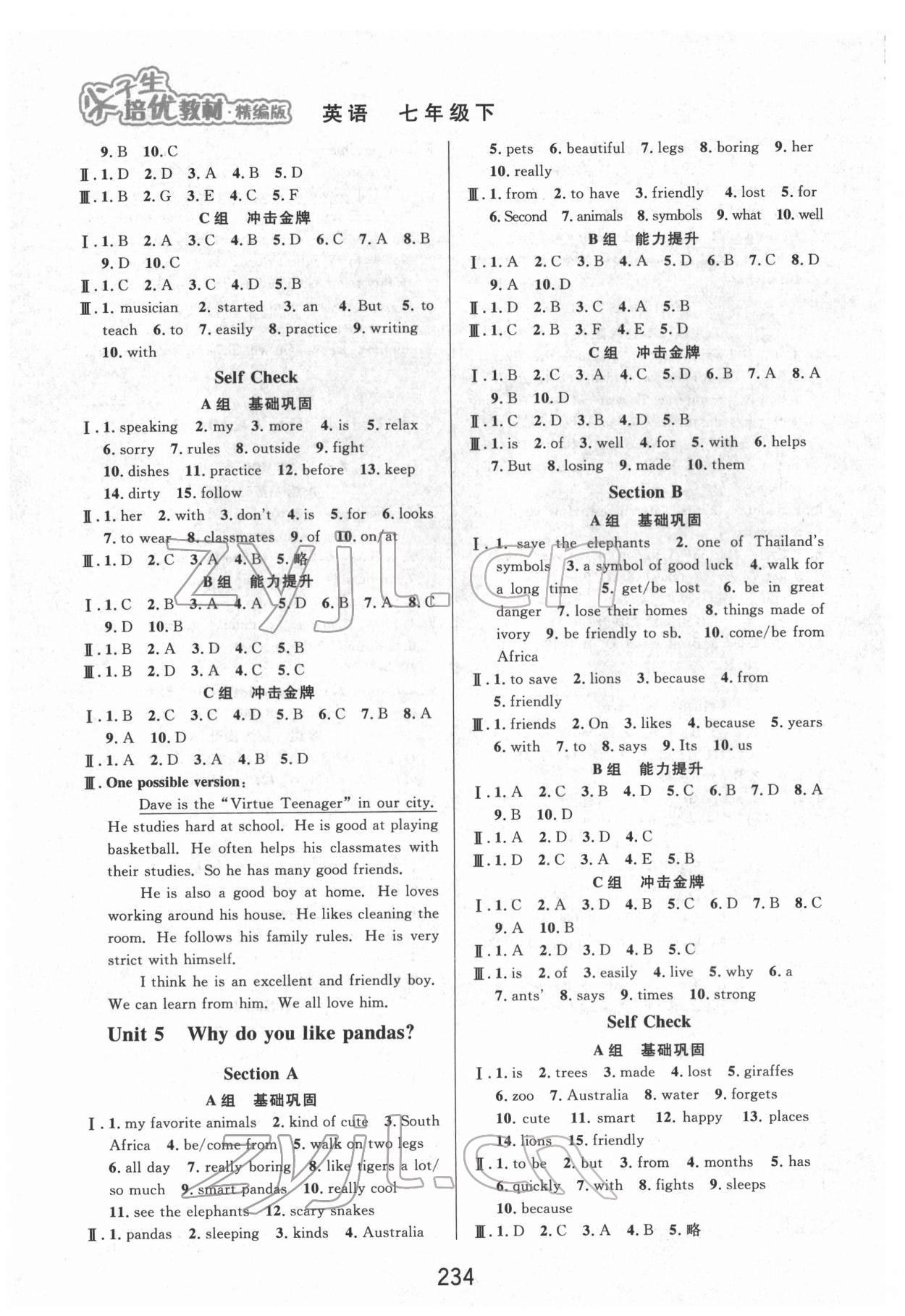 注:目前有些书本章节名称可能整理的还不是很完善,但都是按照顺序排列的,请同学们按照顺序仔细查找。练习册 2022年尖子生培优教材七年级英语下册人教版精编版 答案主要是用来给同学们做完题方便对答案用的,请勿直接抄袭。