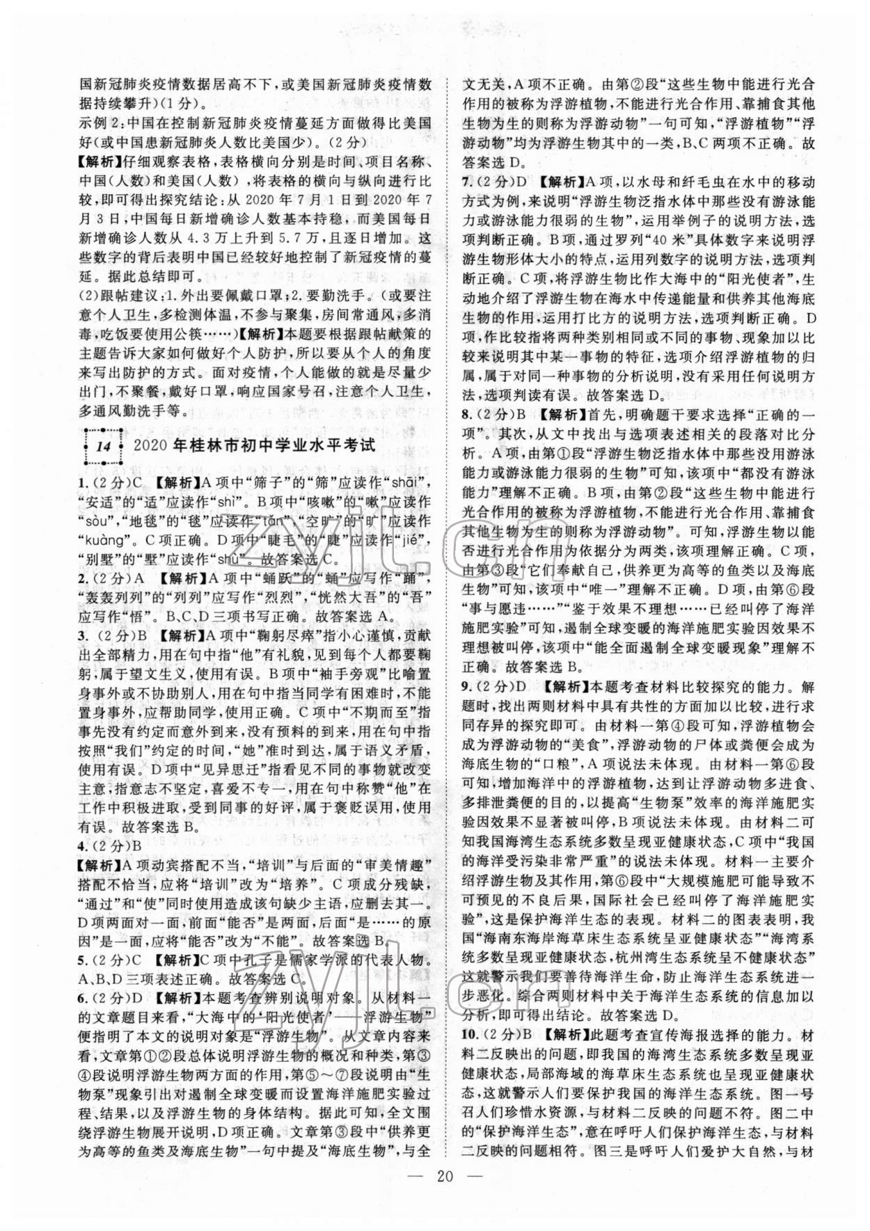 注:目前有些书本章节名称可能整理的还不是很完善,但都是按照顺序排列的,请同学们按照顺序仔细查找。练习册 2022年智慧万羽中考试题荟萃语文人教版广西中考 答案主要是用来给同学们做完题方便对答案用的,请勿直接抄袭。