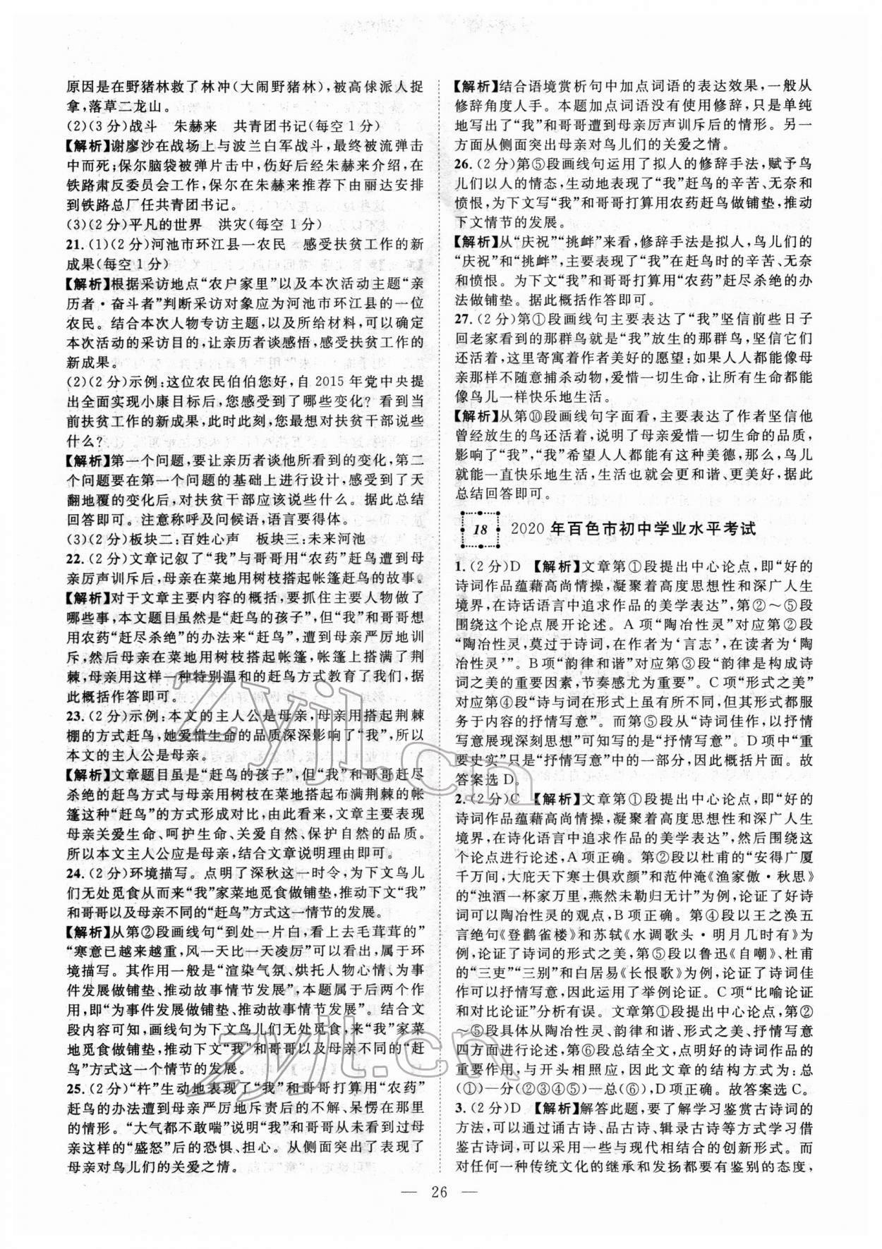 注:目前有些书本章节名称可能整理的还不是很完善,但都是按照顺序排列的,请同学们按照顺序仔细查找。练习册 2022年智慧万羽中考试题荟萃语文人教版广西中考 答案主要是用来给同学们做完题方便对答案用的,请勿直接抄袭。