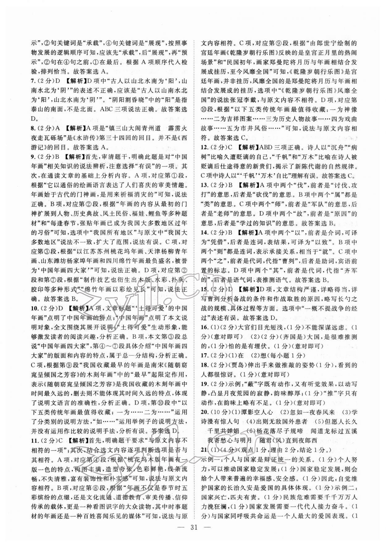 注:目前有些书本章节名称可能整理的还不是很完善,但都是按照顺序排列的,请同学们按照顺序仔细查找。练习册 2022年智慧万羽中考试题荟萃语文人教版广西中考 答案主要是用来给同学们做完题方便对答案用的,请勿直接抄袭。