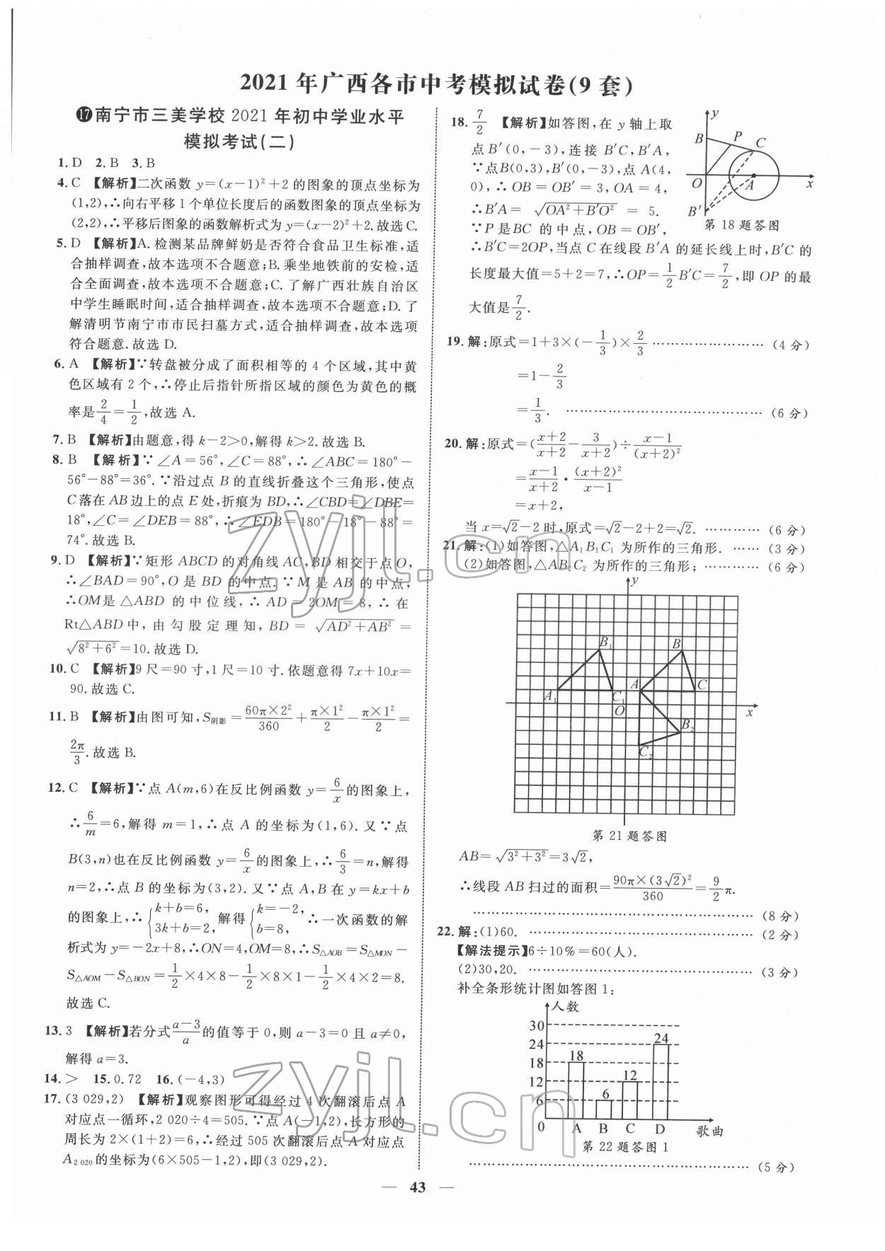 注:目前有些书本章节名称可能整理的还不是很完善,但都是按照顺序排列的,请同学们按照顺序仔细查找。练习册 2022年中考金卷中考试题精编数学广西专版 答案主要是用来给同学们做完题方便对答案用的,请勿直接抄袭。