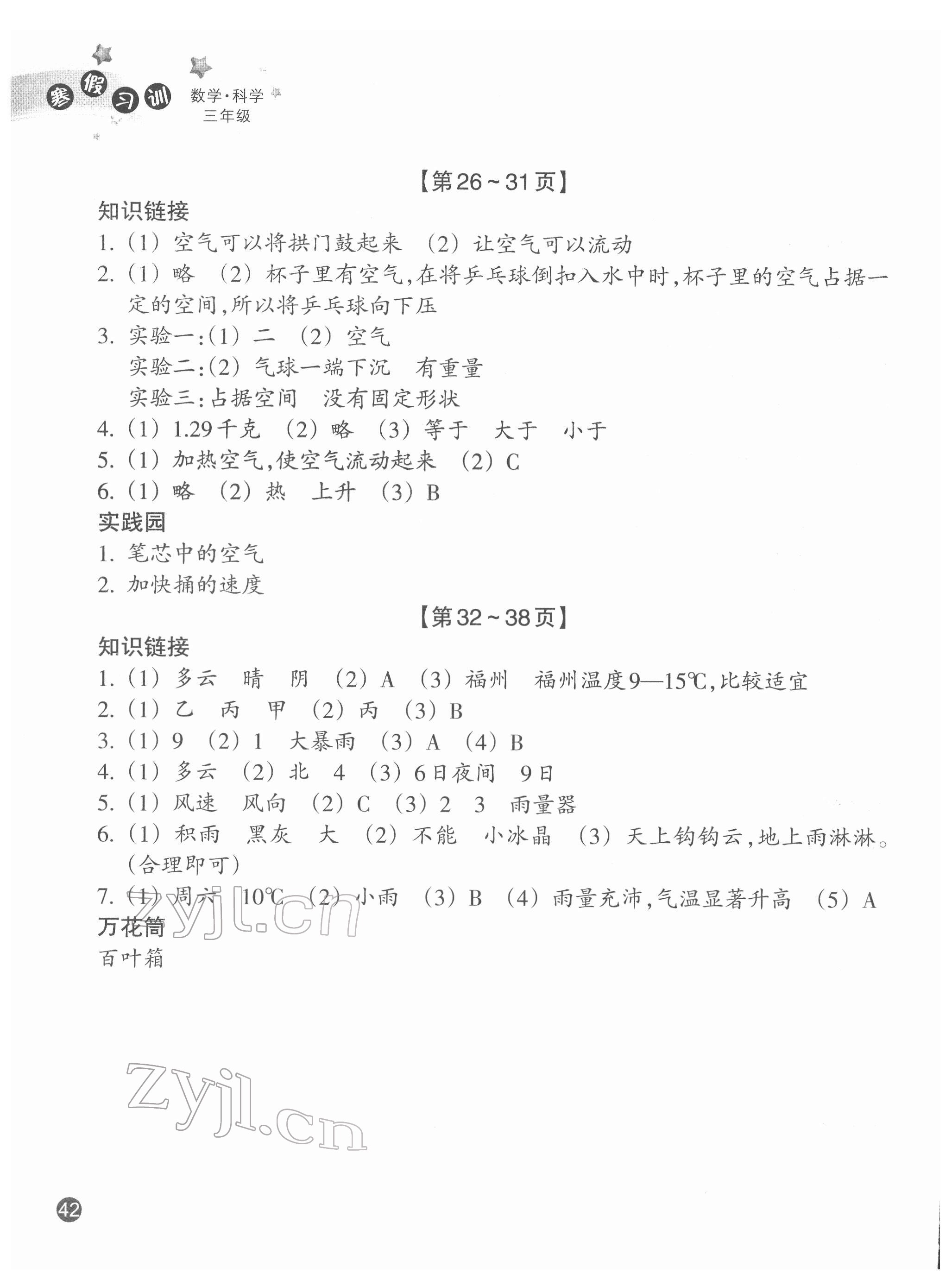 注:目前有些书本章节名称可能整理的还不是很完善,但都是按照顺序排列的,请同学们按照顺序仔细查找。练习册 2022年寒假习训三年级数学北师大版科学浙教版浙江教育出版社 答案主要是用来给同学们做完题方便对答案用的,请勿直接抄袭。