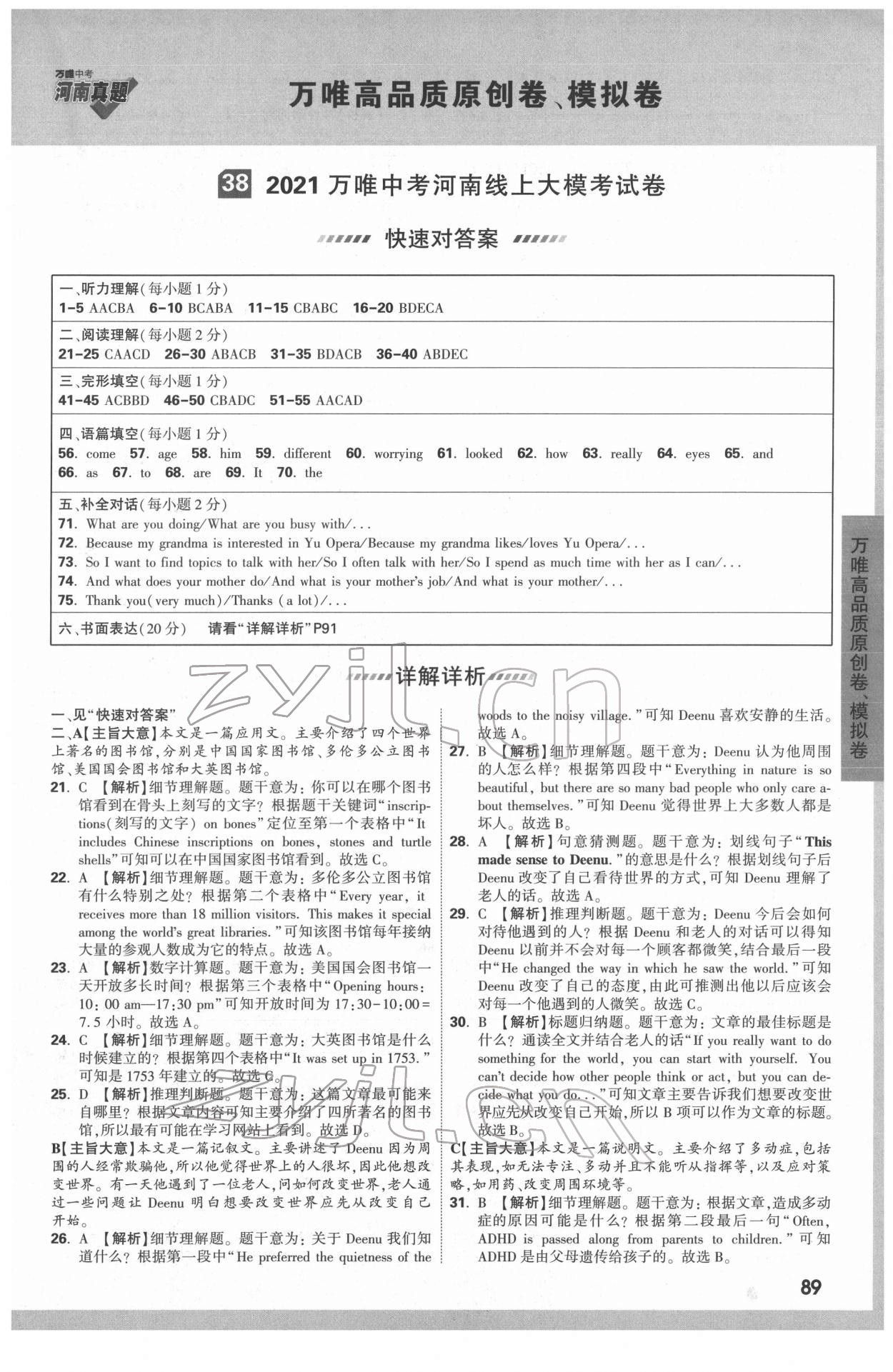 注:目前有些书本章节名称可能整理的还不是很完善,但都是按照顺序排列的,请同学们按照顺序仔细查找。练习册 2022年万唯中考真题英语河南专版 答案主要是用来给同学们做完题方便对答案用的,请勿直接抄袭。