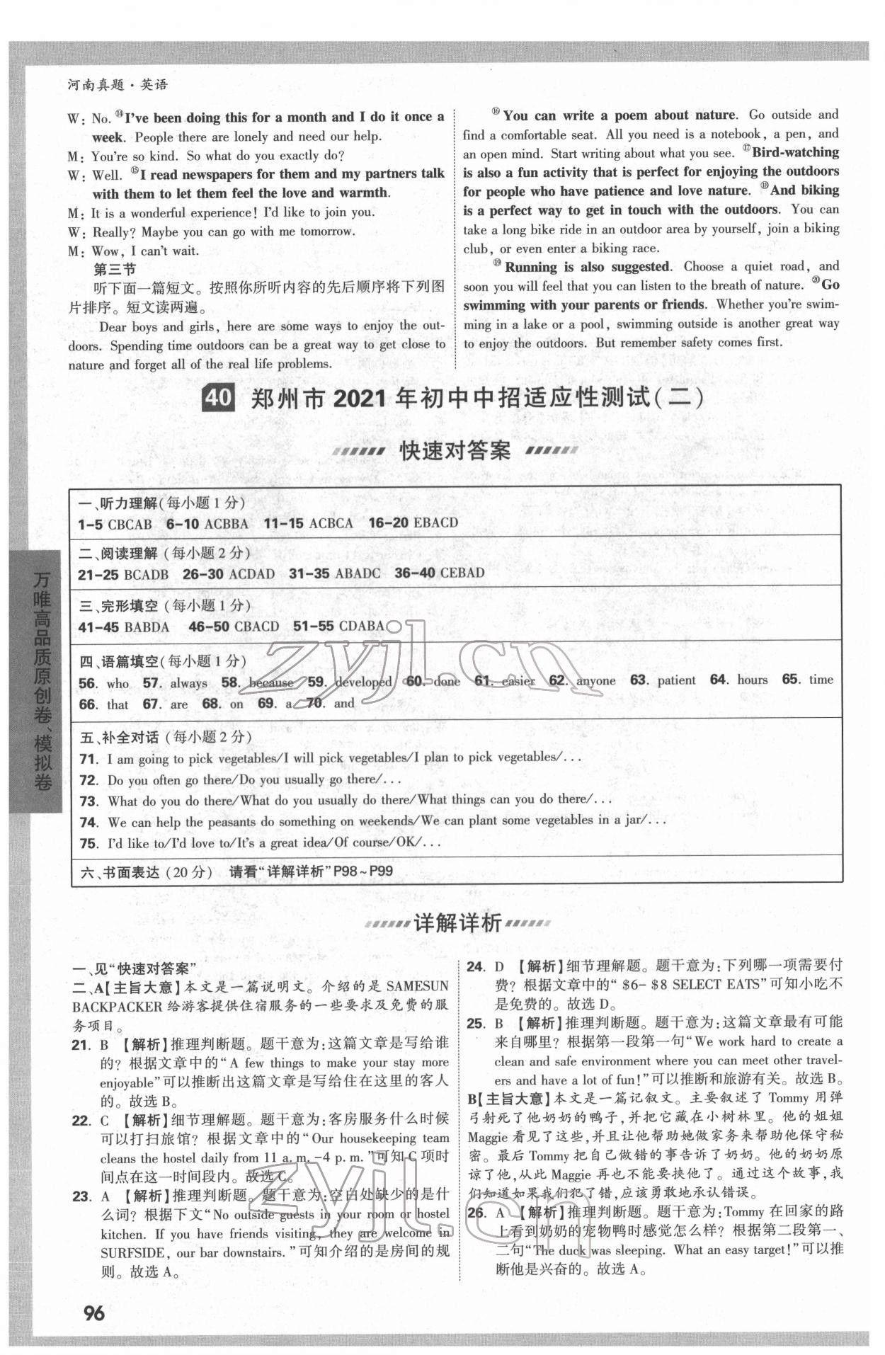 注:目前有些书本章节名称可能整理的还不是很完善,但都是按照顺序排列的,请同学们按照顺序仔细查找。练习册 2022年万唯中考真题英语河南专版 答案主要是用来给同学们做完题方便对答案用的,请勿直接抄袭。