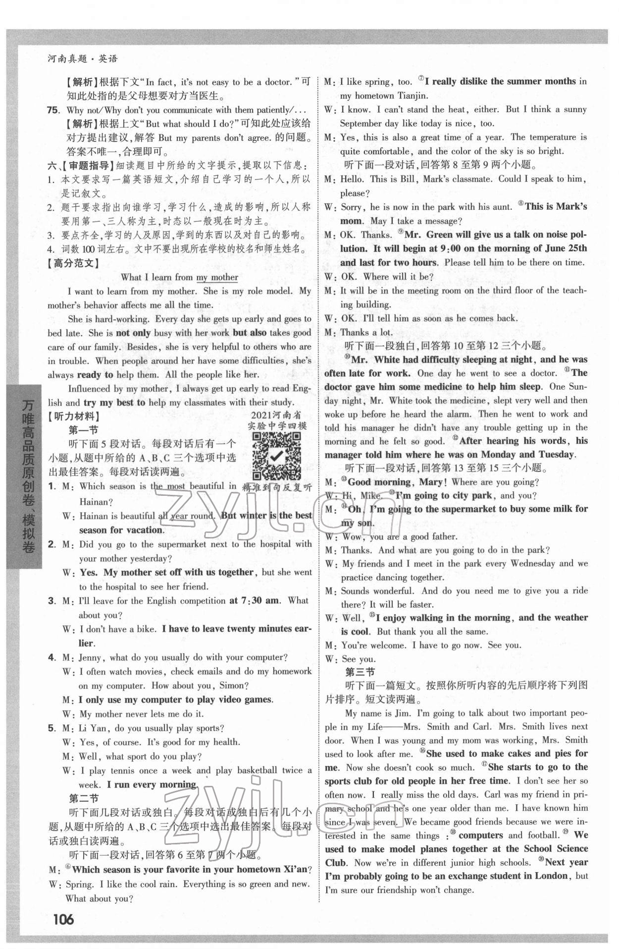 注:目前有些书本章节名称可能整理的还不是很完善,但都是按照顺序排列的,请同学们按照顺序仔细查找。练习册 2022年万唯中考真题英语河南专版 答案主要是用来给同学们做完题方便对答案用的,请勿直接抄袭。