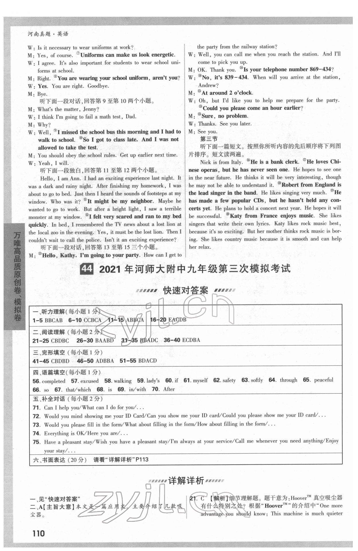 注:目前有些书本章节名称可能整理的还不是很完善,但都是按照顺序排列的,请同学们按照顺序仔细查找。练习册 2022年万唯中考真题英语河南专版 答案主要是用来给同学们做完题方便对答案用的,请勿直接抄袭。