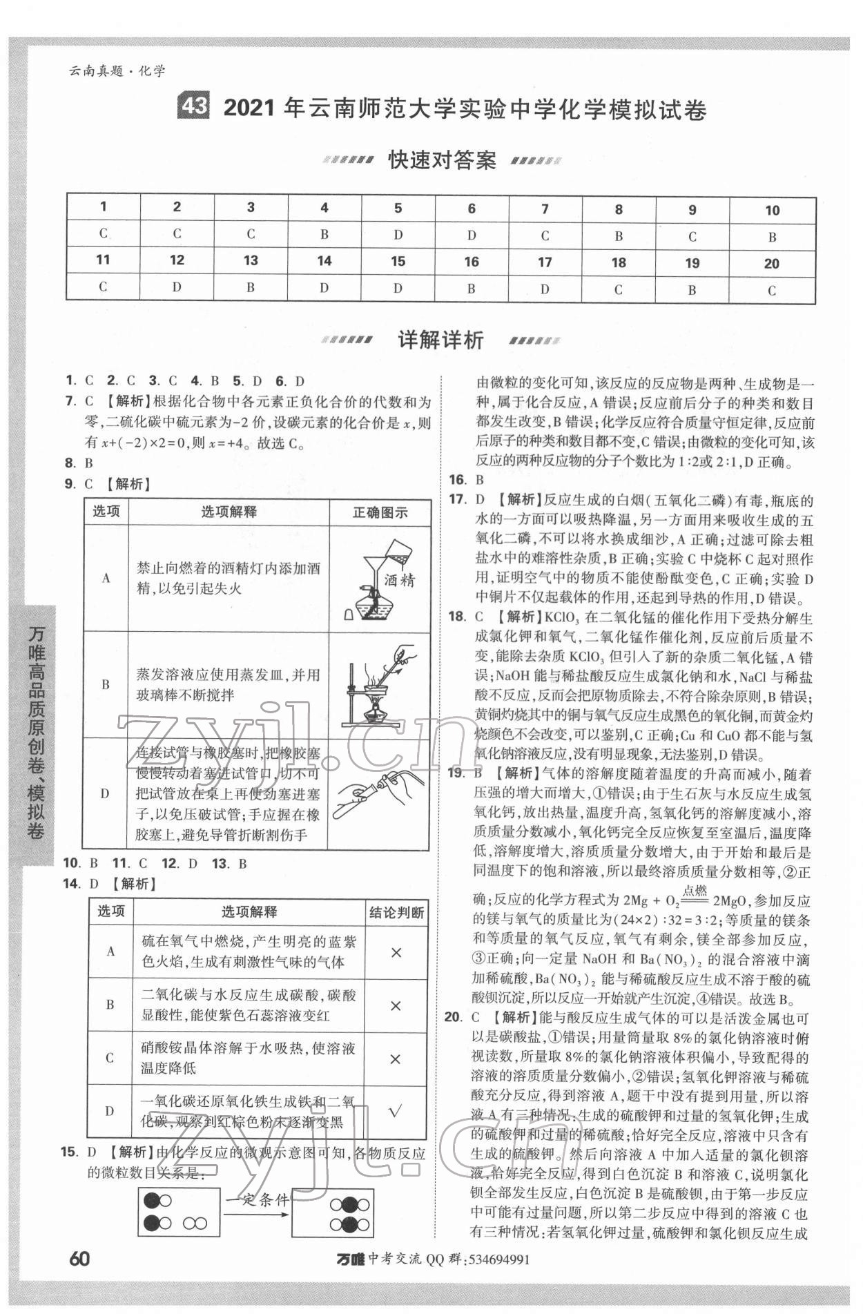 注:目前有些书本章节名称可能整理的还不是很完善,但都是按照顺序排列的,请同学们按照顺序仔细查找。练习册 2022年万唯中考云南真题化学 答案主要是用来给同学们做完题方便对答案用的,请勿直接抄袭。
