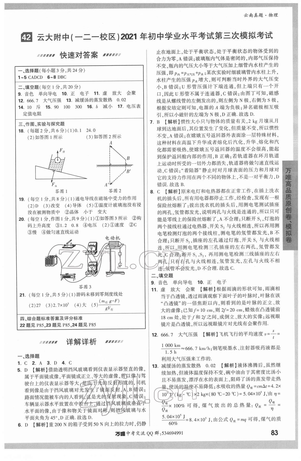 注:目前有些书本章节名称可能整理的还不是很完善,但都是按照顺序排列的,请同学们按照顺序仔细查找。练习册 2022年万唯中考云南真题物理 答案主要是用来给同学们做完题方便对答案用的,请勿直接抄袭。