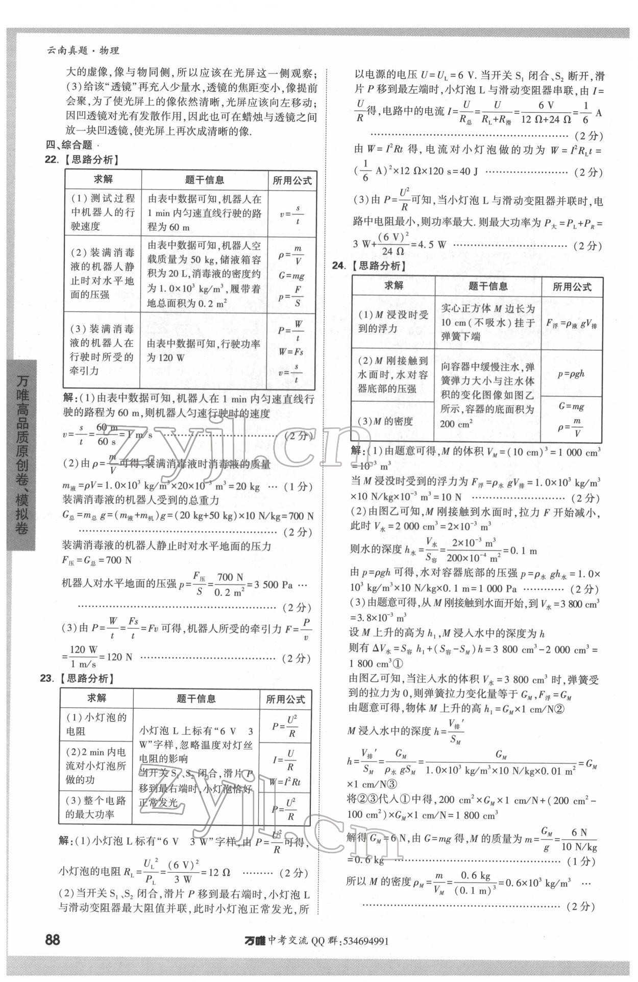 2022年万唯中考云南真题物理