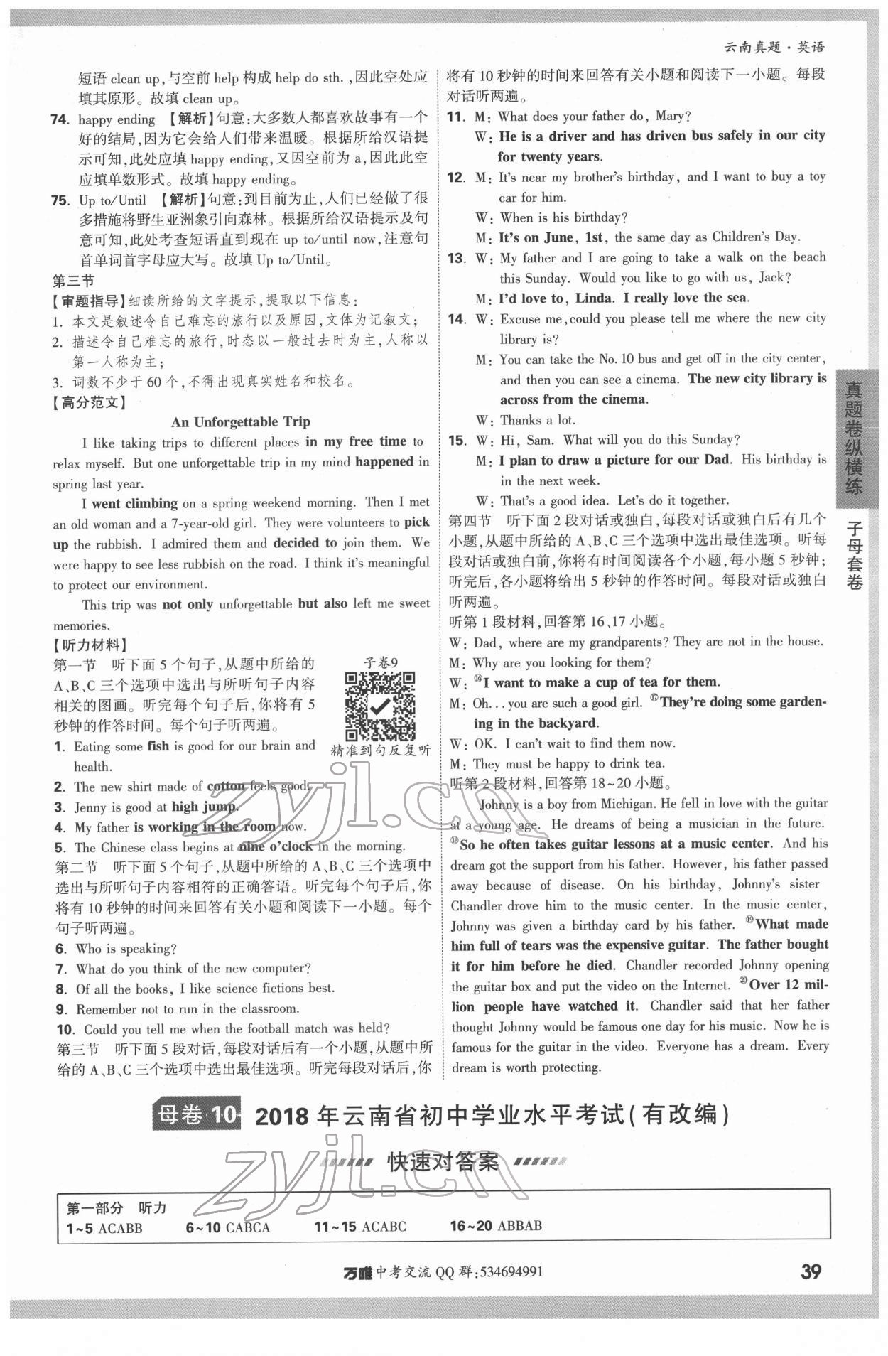 注:目前有些书本章节名称可能整理的还不是很完善,但都是按照顺序排列的,请同学们按照顺序仔细查找。练习册 2022年万唯中考云南真题英语 答案主要是用来给同学们做完题方便对答案用的,请勿直接抄袭。