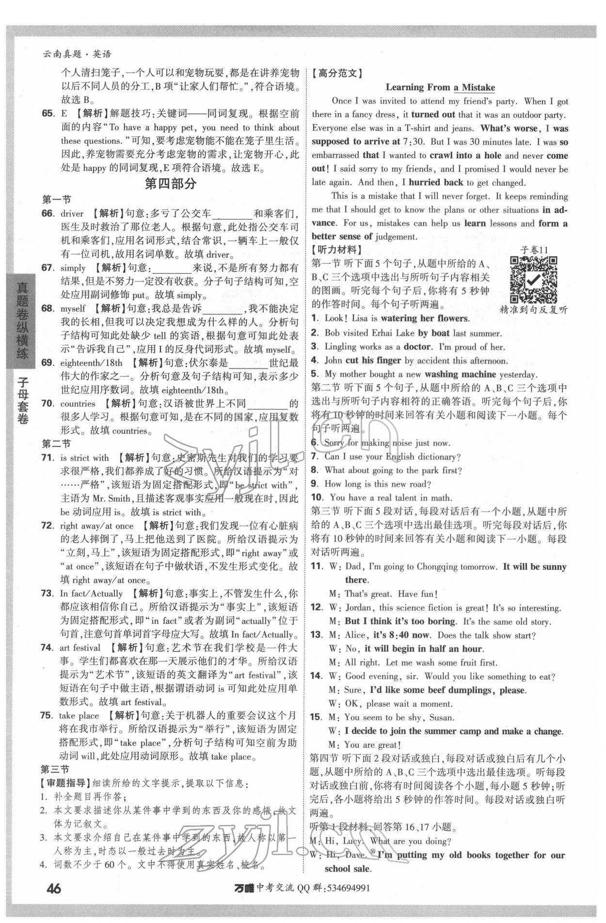 注:目前有些书本章节名称可能整理的还不是很完善,但都是按照顺序排列的,请同学们按照顺序仔细查找。练习册 2022年万唯中考云南真题英语 答案主要是用来给同学们做完题方便对答案用的,请勿直接抄袭。