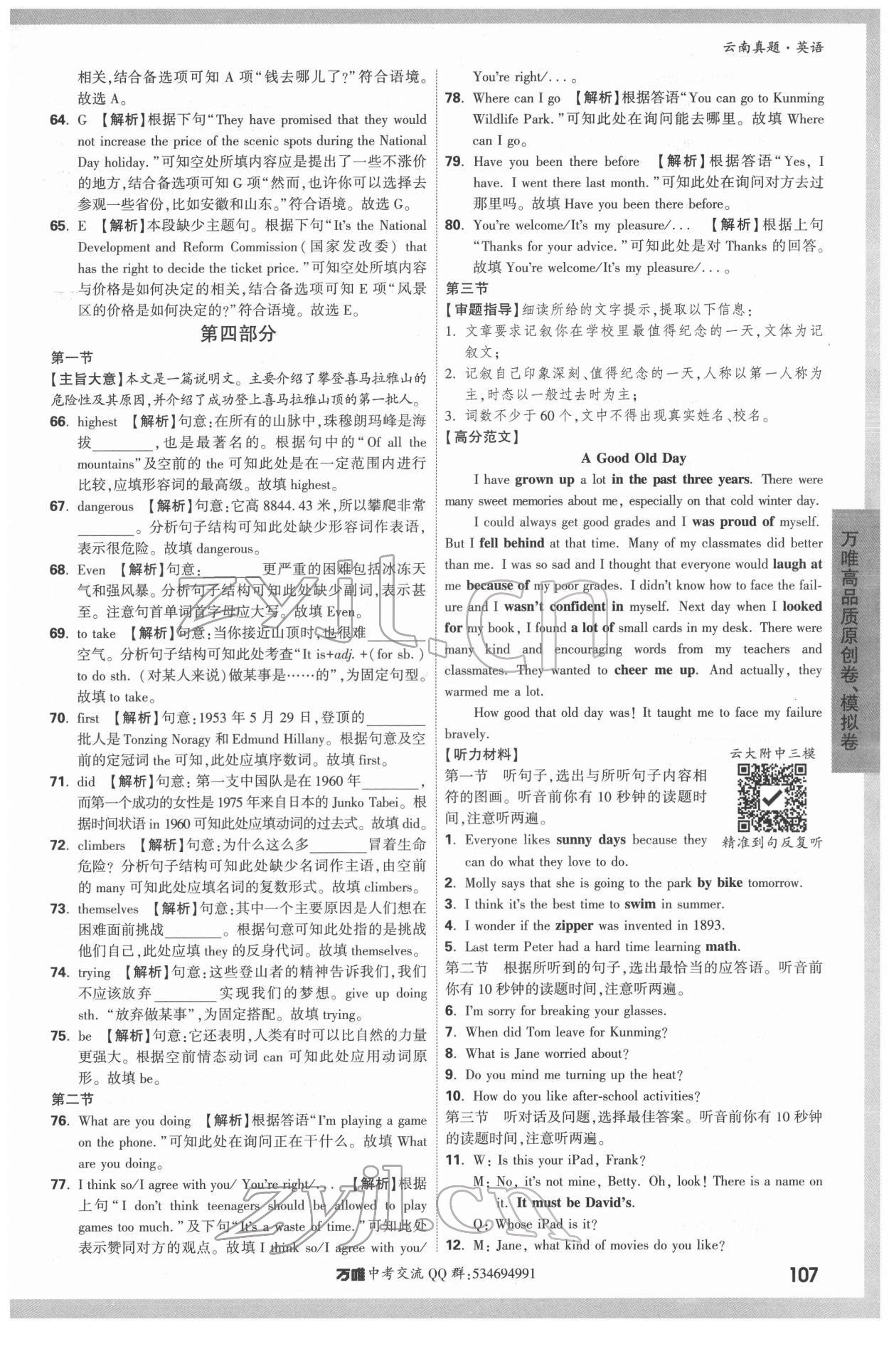 注:目前有些书本章节名称可能整理的还不是很完善,但都是按照顺序排列的,请同学们按照顺序仔细查找。练习册 2022年万唯中考云南真题英语 答案主要是用来给同学们做完题方便对答案用的,请勿直接抄袭。