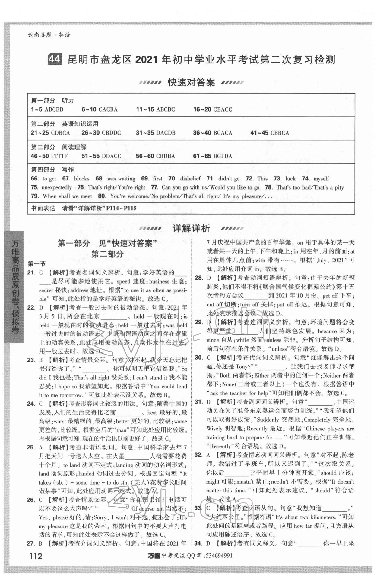 注:目前有些书本章节名称可能整理的还不是很完善,但都是按照顺序排列的,请同学们按照顺序仔细查找。练习册 2022年万唯中考云南真题英语 答案主要是用来给同学们做完题方便对答案用的,请勿直接抄袭。