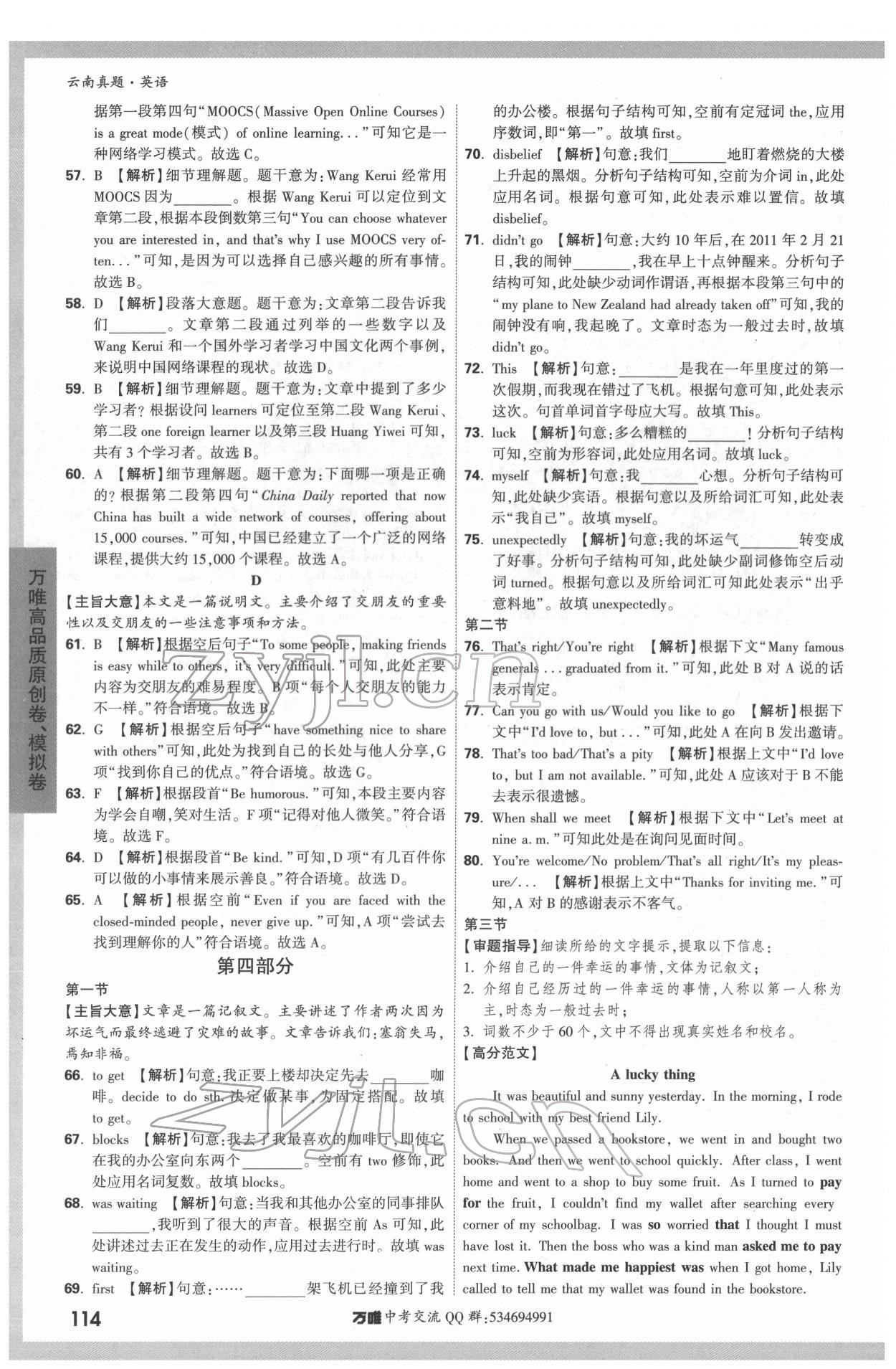 注:目前有些书本章节名称可能整理的还不是很完善,但都是按照顺序排列的,请同学们按照顺序仔细查找。练习册 2022年万唯中考云南真题英语 答案主要是用来给同学们做完题方便对答案用的,请勿直接抄袭。