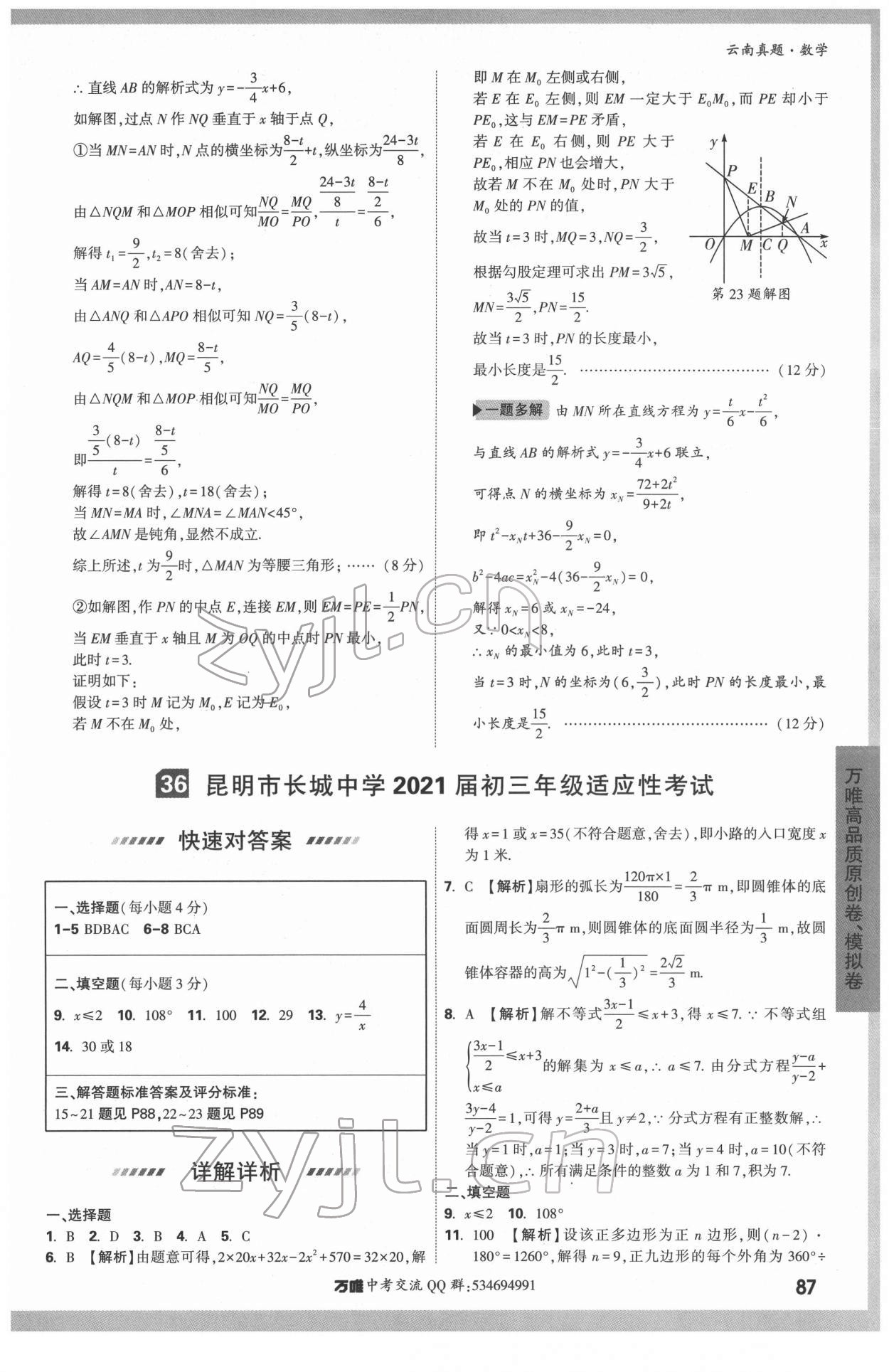 2022年万唯中考真题数学云南专版