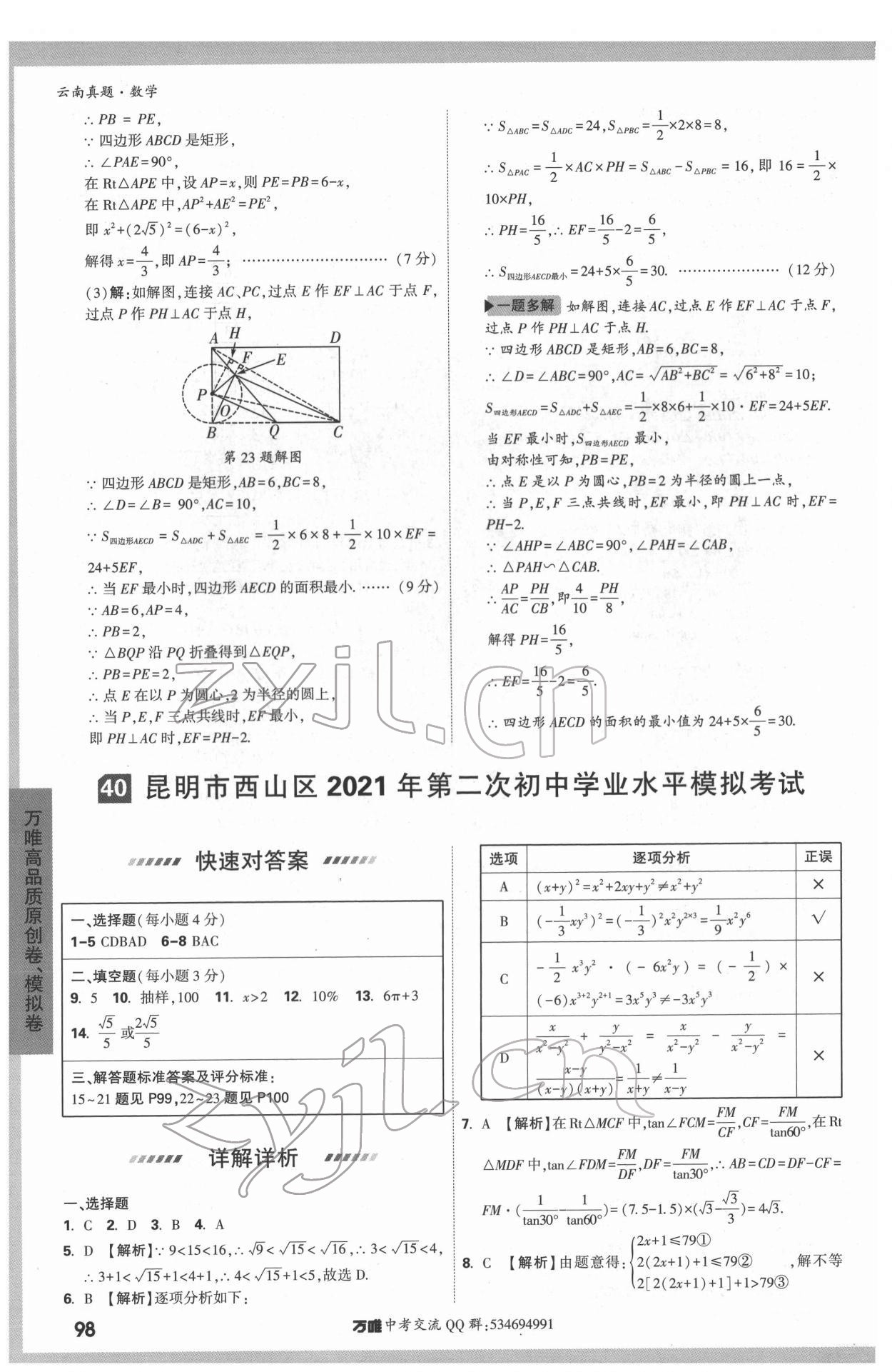 注:目前有些书本章节名称可能整理的还不是很完善,但都是按照顺序排列的,请同学们按照顺序仔细查找。练习册 2022年万唯中考真题数学云南专版 答案主要是用来给同学们做完题方便对答案用的,请勿直接抄袭。