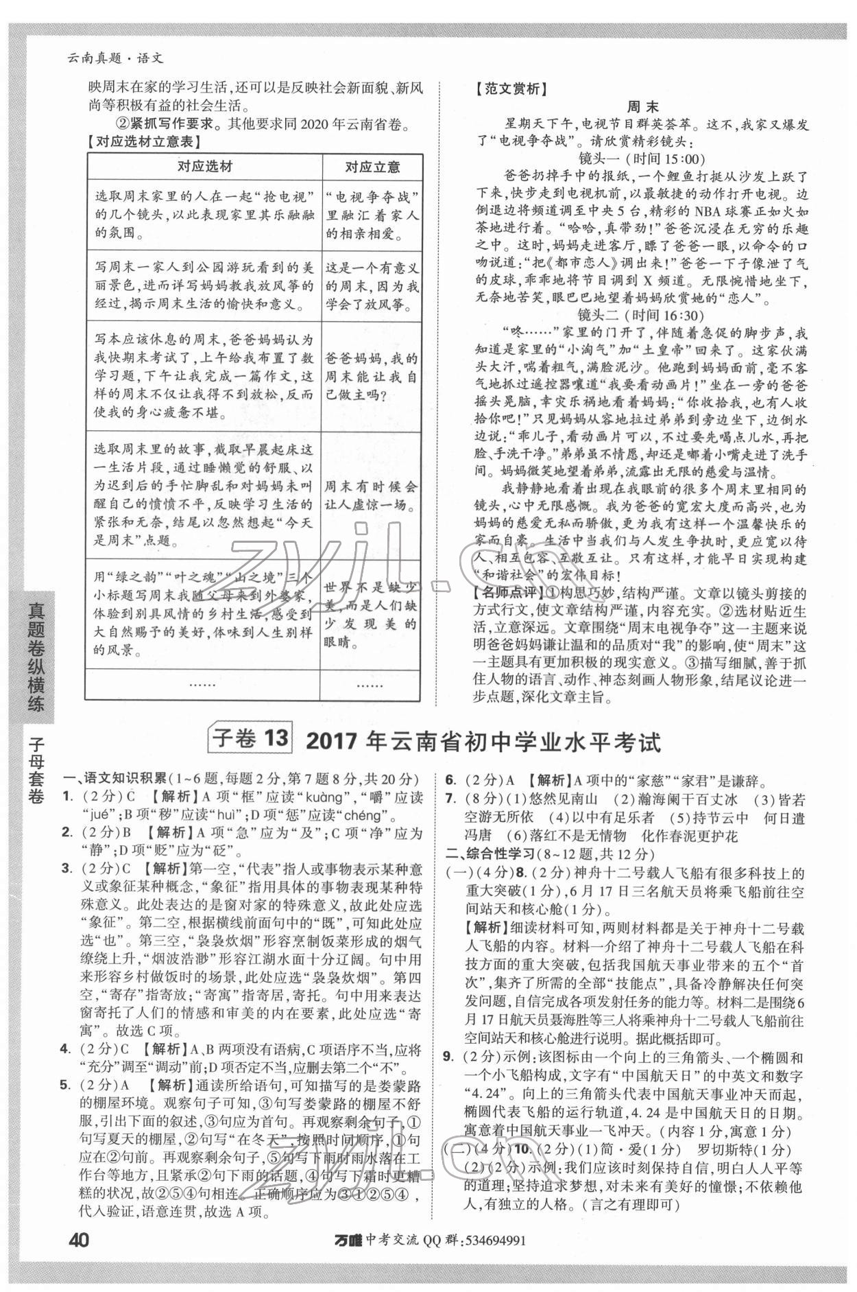 2022年万唯中考真题语文云南专版